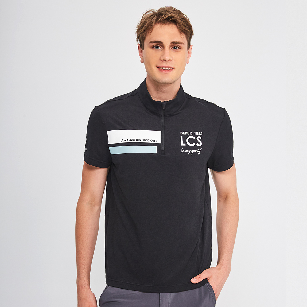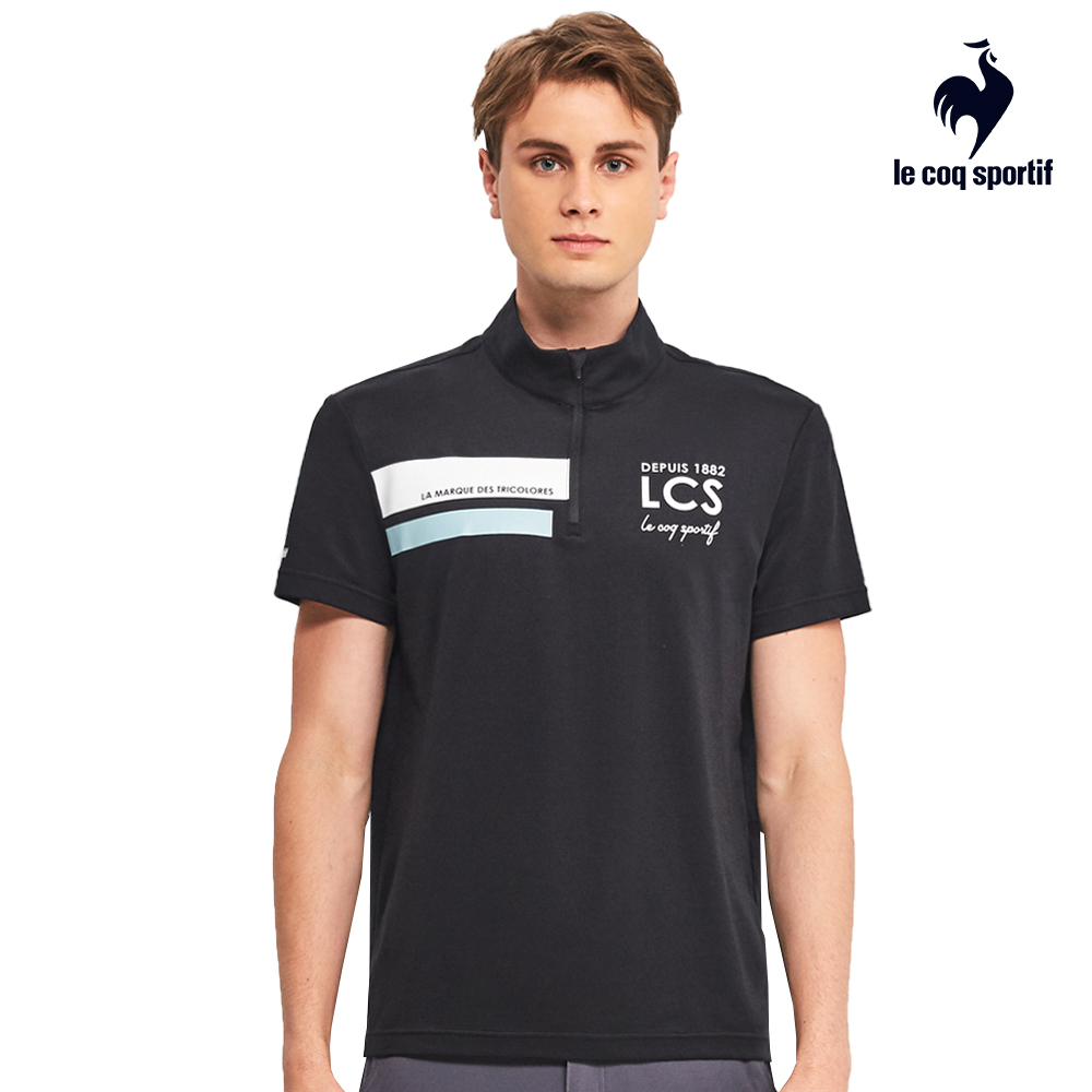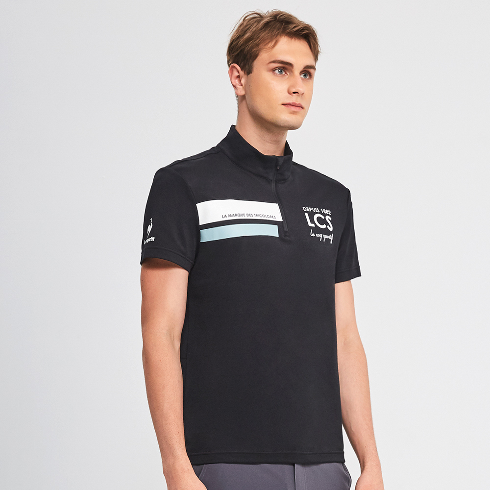 【LE COQ SPORTIF 法國公雞】冰涼紗法式經典短袖立領衫-男款-黑色-LWR21643