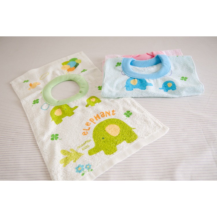 台灣製毛巾 愛樂象 印花圍兜/口水巾 隨機出貨 27x52cm 達興織造
