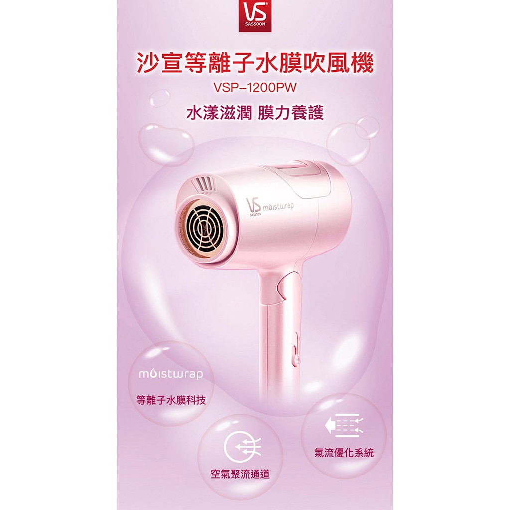 英國VS沙宣 等離子水膜雙電壓摺疊吹風機-櫻花粉 VSP-1200PW
