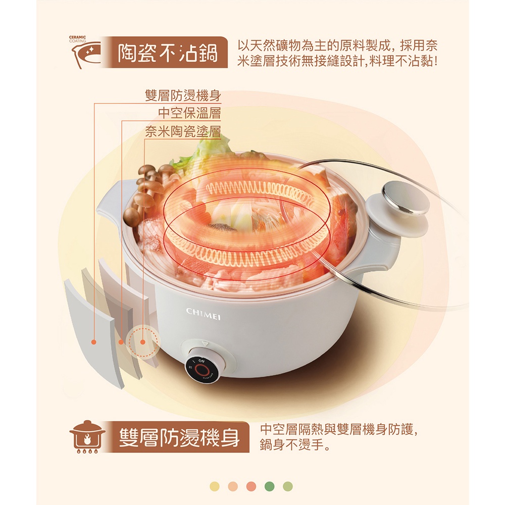 【CHIMEI 奇美】3L日式陶瓷多功能不沾料理鍋/美食鍋/電火鍋/煎煮炒炸萬用鍋(EP-04MC20)