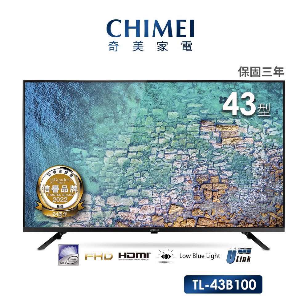 【CHIMEI 奇美】43型 HD低藍光顯示器 不含視訊盒(TL-43B100)