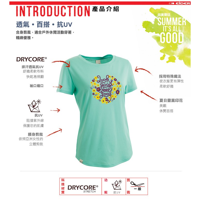 【EIDER】女排汗透氣短袖圓領衫/EIT2652-零碼38