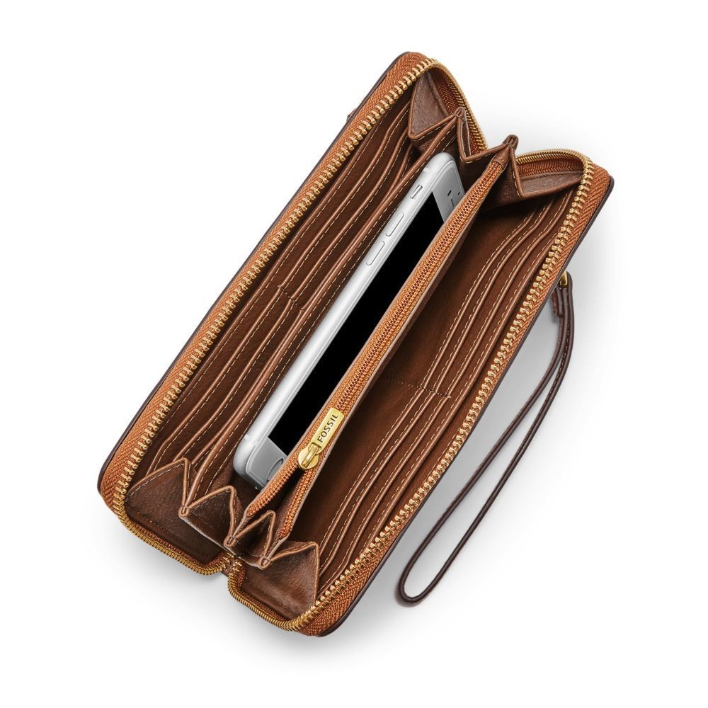 【FOSSIL 官方旗艦館】Logan 多層真皮拉鍊RFID防盜長夾-咖啡色 SL7831200
