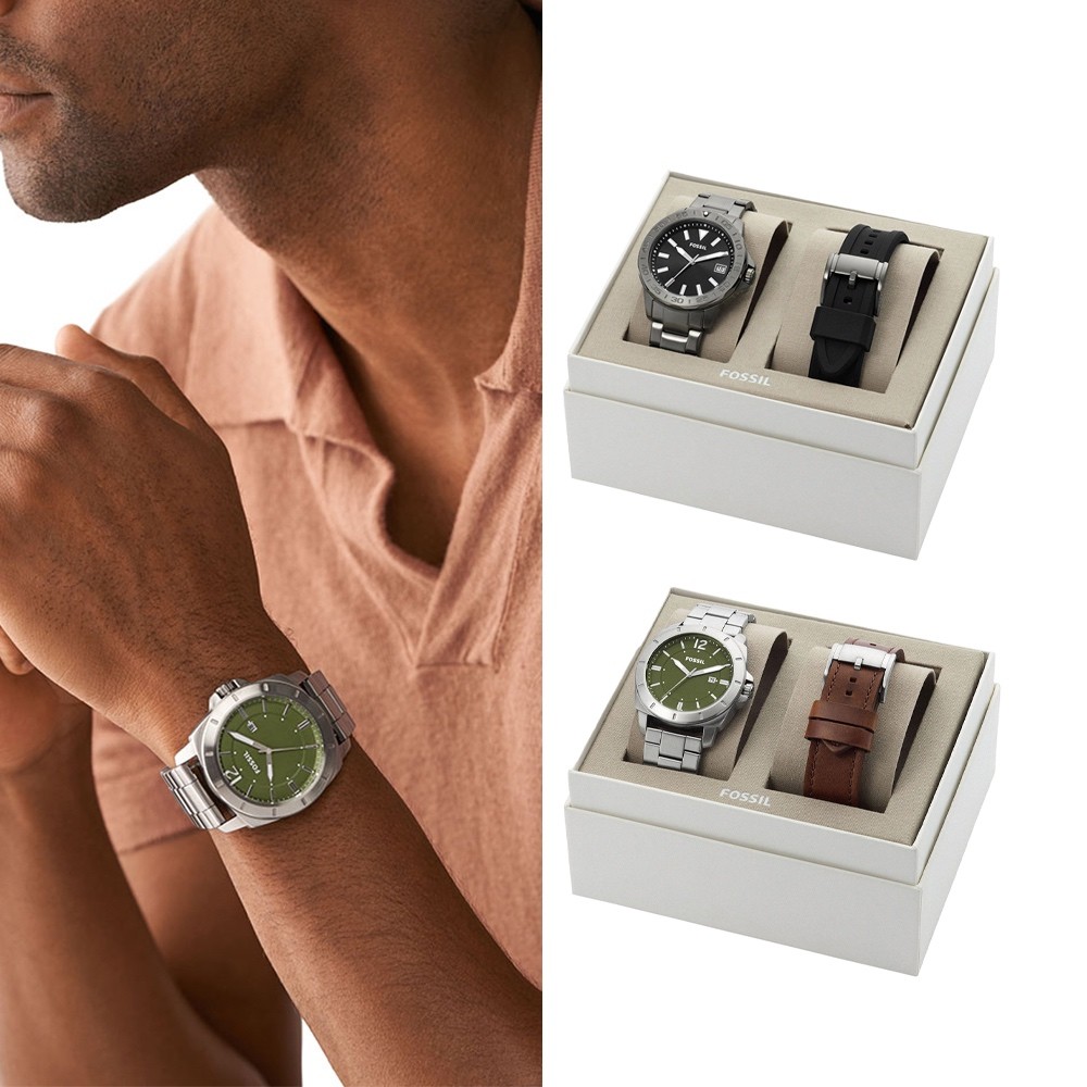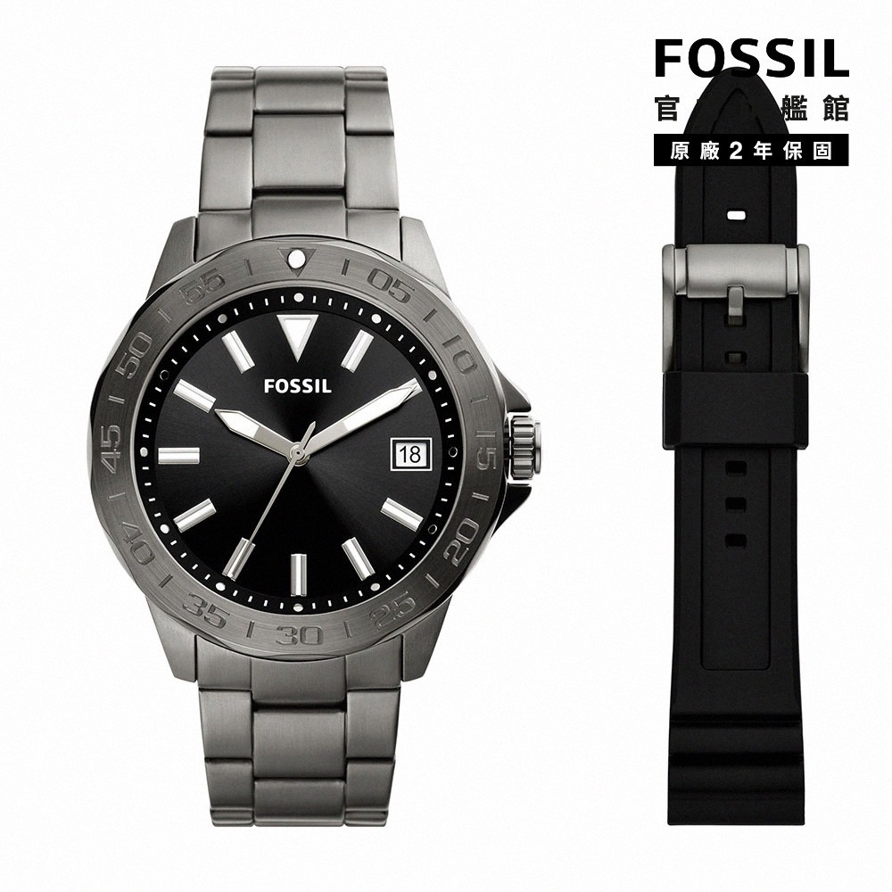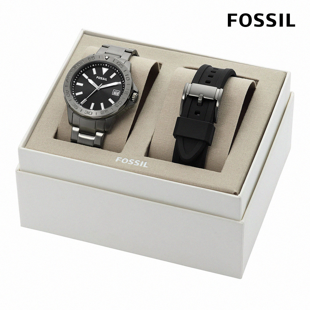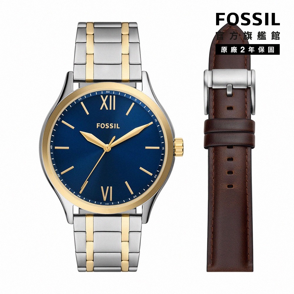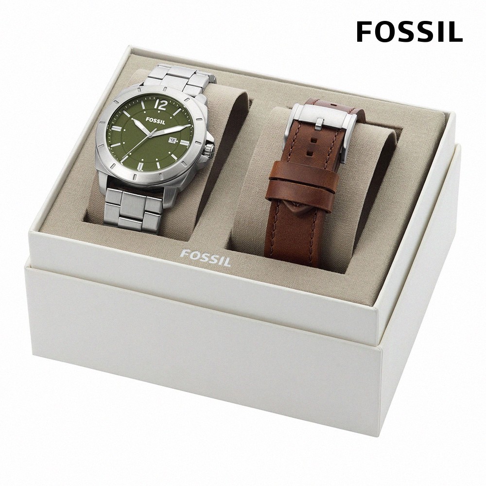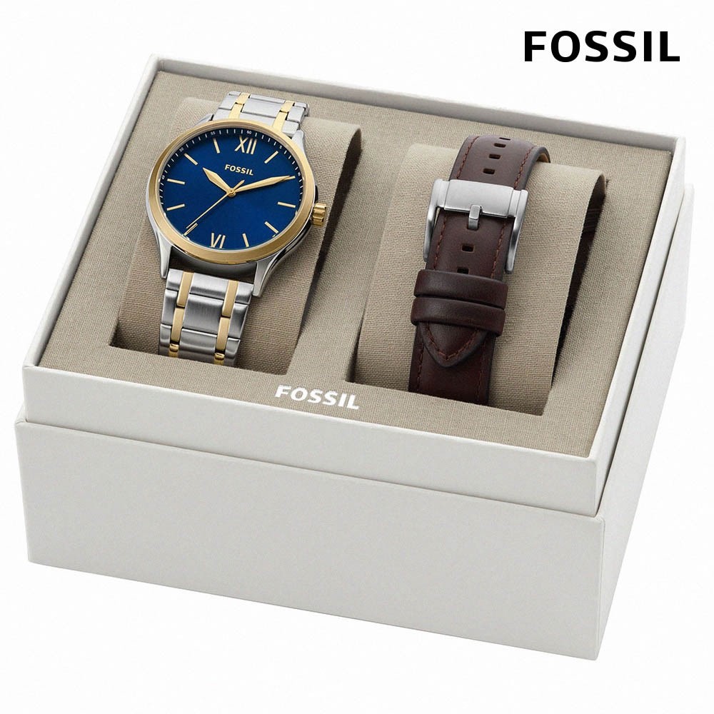 【FOSSIL 官方旗艦館】美式經典指針手錶套組 不銹鋼錶帶禮盒(多款可選)