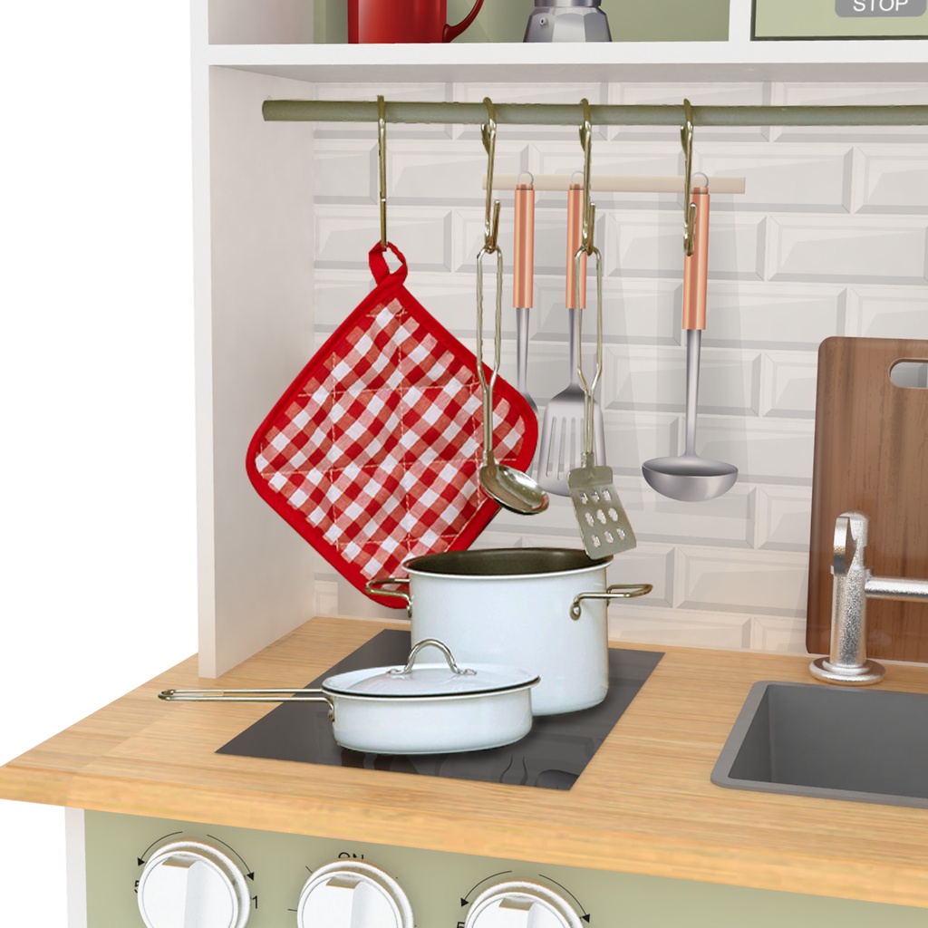 Teamson 波士頓小廚師木製廚房-橄欖綠 (附餐具配件)