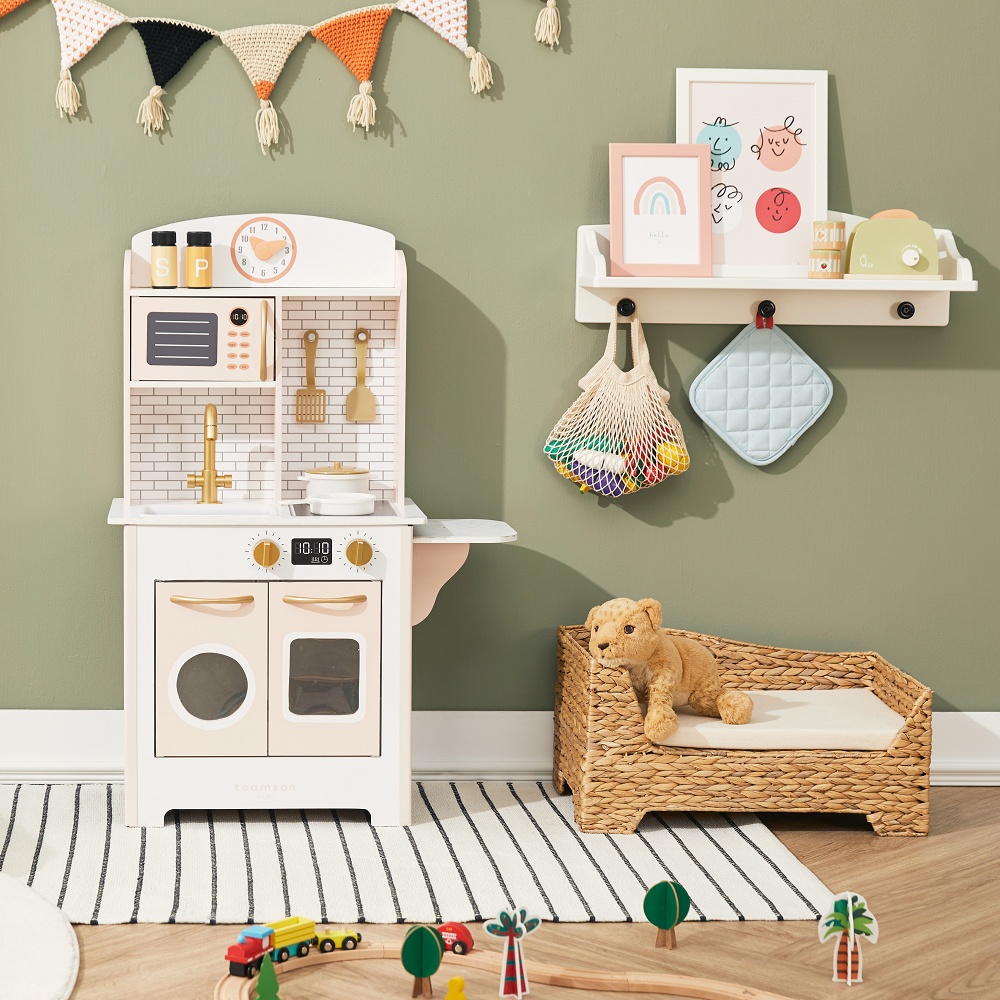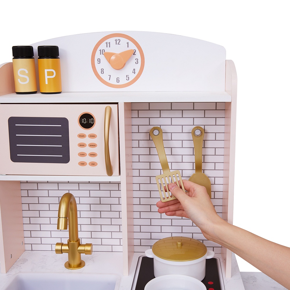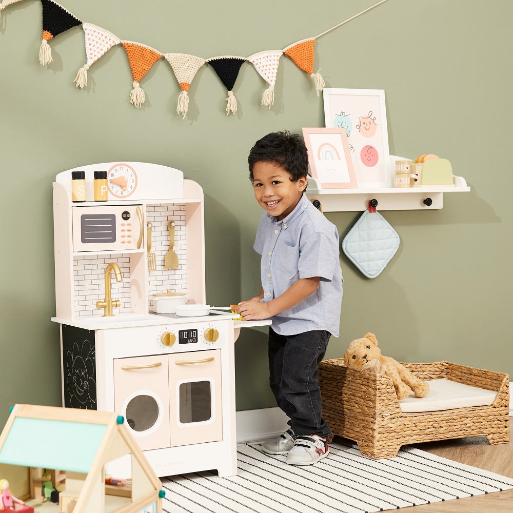 Teamson 小廚師桑托斯復古木製家家酒兒童廚房玩具-粉橘色