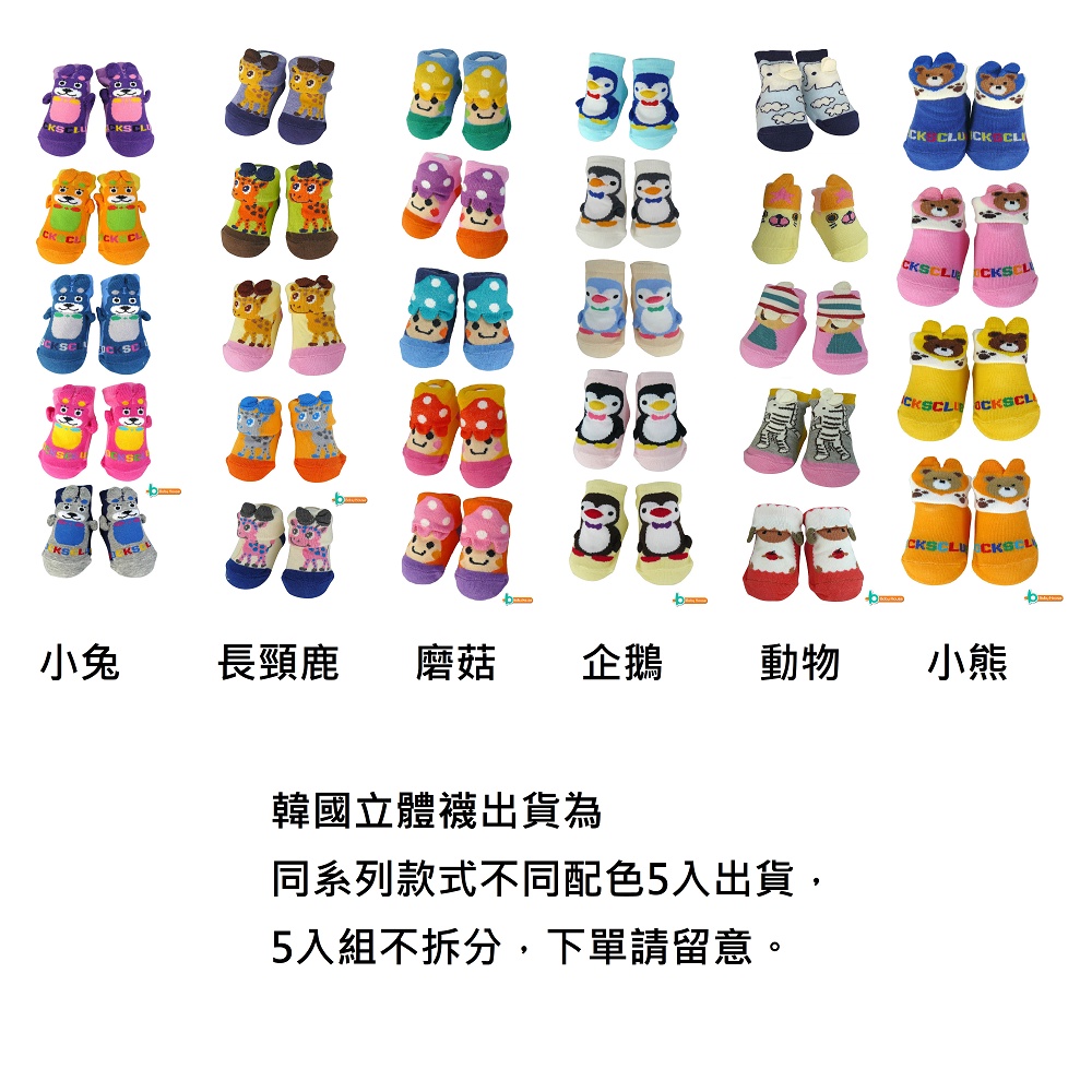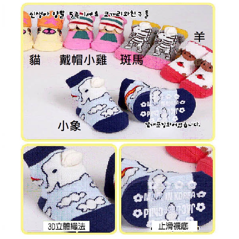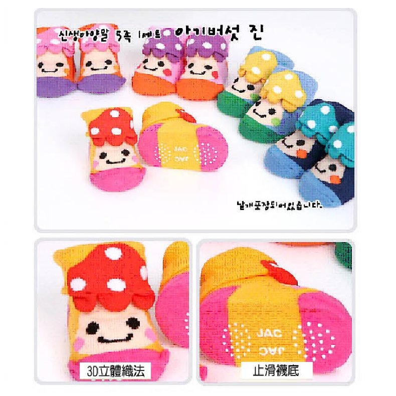 Baby House 愛兒房 韓國製造 純綿寶寶3D立體寶寶止滑襪 立體襪 防滑襪 學步襪 5入組