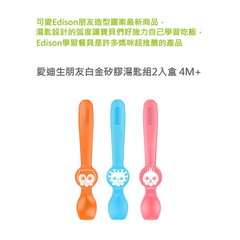愛迪生 Edison 朋友白金矽膠湯匙組2入盒 4M+ <Baby House 愛兒房生活館>