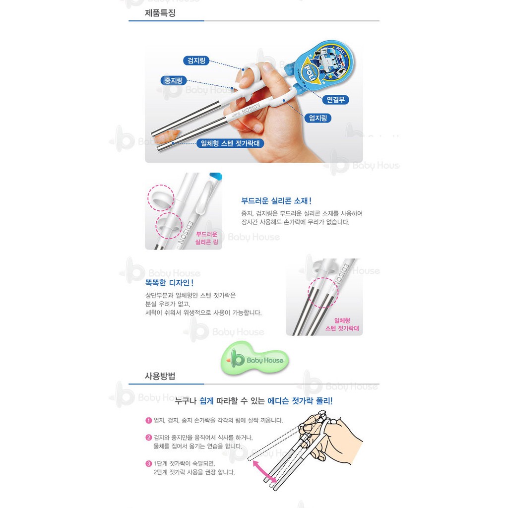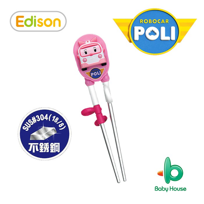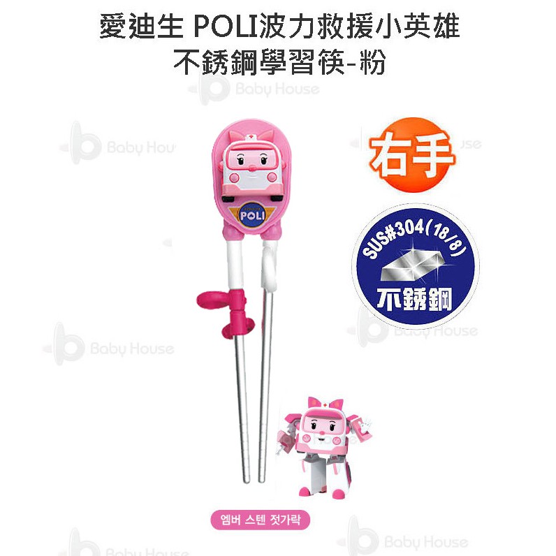 Edison 愛迪生 POLI 波力 救援小英雄 兒童不銹鋼 不鏽鋼學習筷/筷子-粉 全新3D造型 (右手專用)