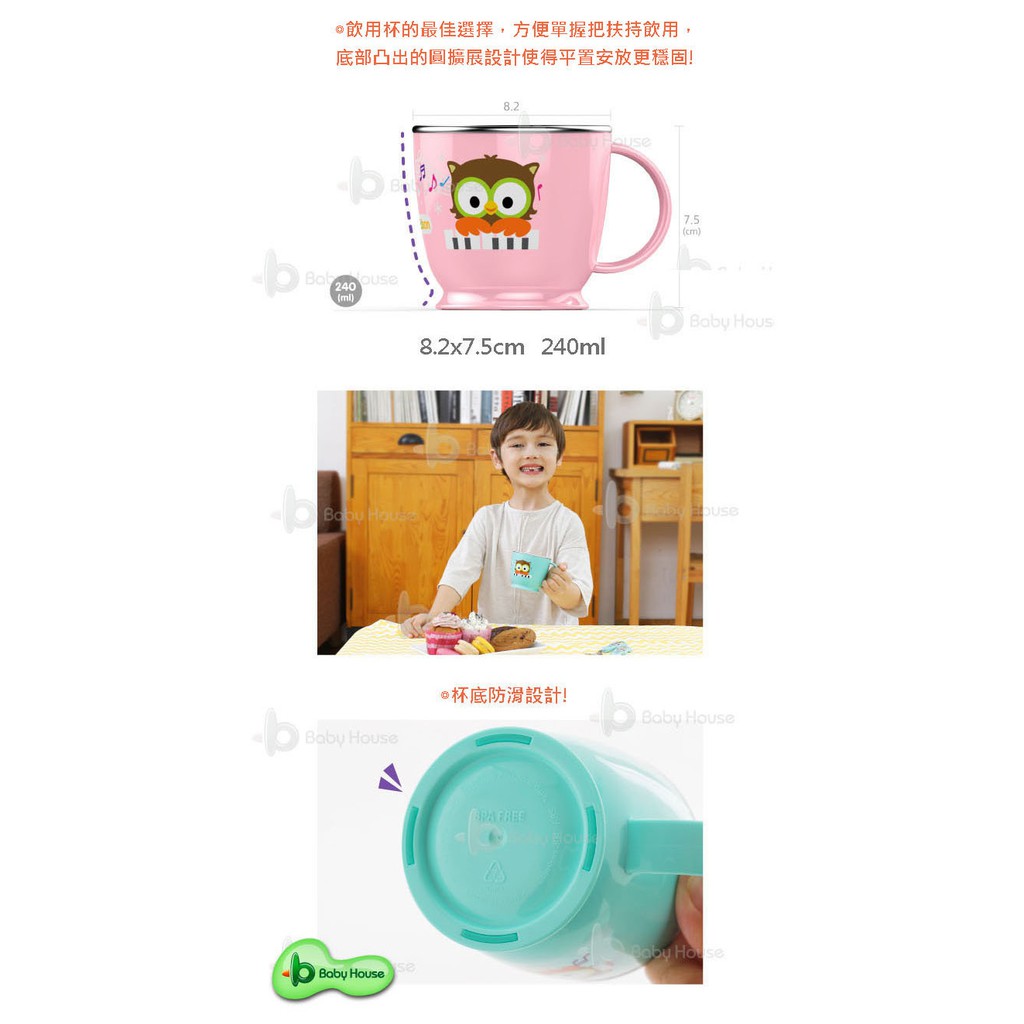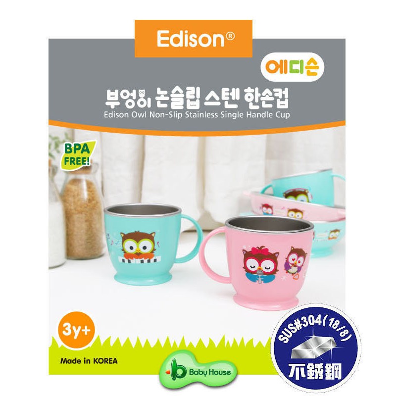 Edison 愛迪生 Owl 貓頭鷹 ST 不銹鋼304 單握把水杯 韓國進口不銹鋼餐具 愛兒房官方商城