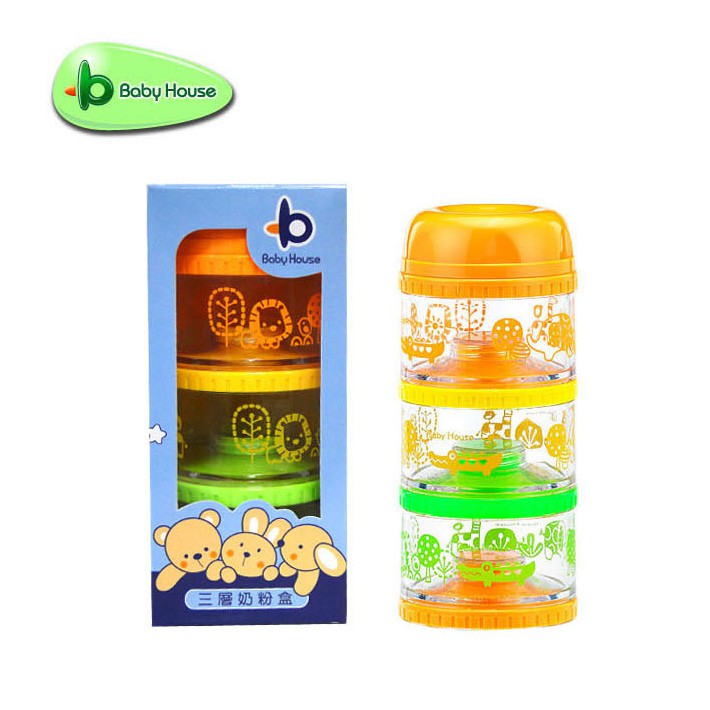 Baby House 愛兒房三層奶粉盒(動物家族-橘) 奶粉分裝盒 (食品級環保科技材質)台灣製