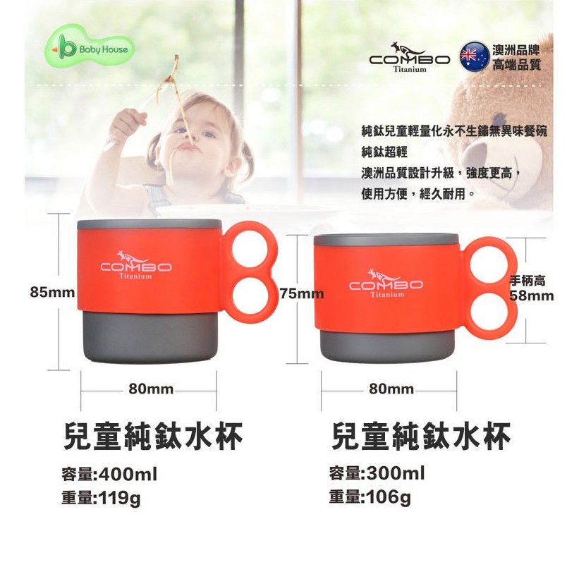 COMBO 澳洲純鈦彩矽握把水杯-300ml(106g) (高級兒童餐具)BabyHouse官方商城