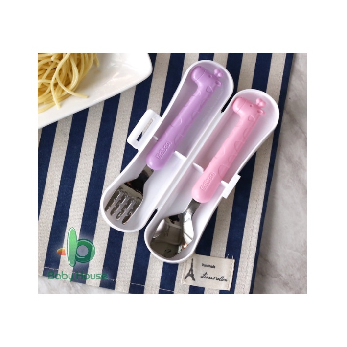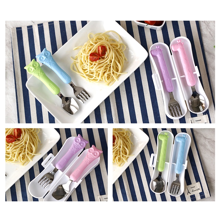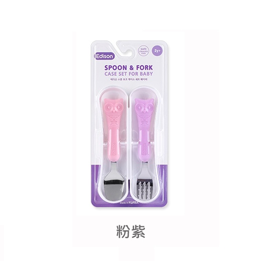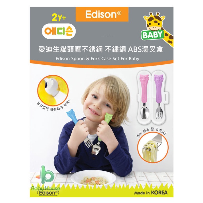 EDISON 愛迪生貓頭鷹不銹鋼 不鏽鋼 ABS湯叉盒 2歲+ (韓國進口)湯匙叉子 愛兒房 Baby House