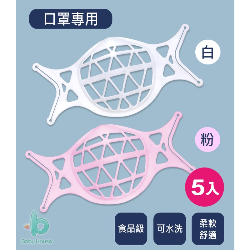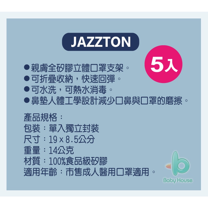 JAZZTON 3D口罩架(5入) 立體口罩架 100%食品級矽膠 舒適防悶透氣/可水洗 BabyHouse 愛兒房