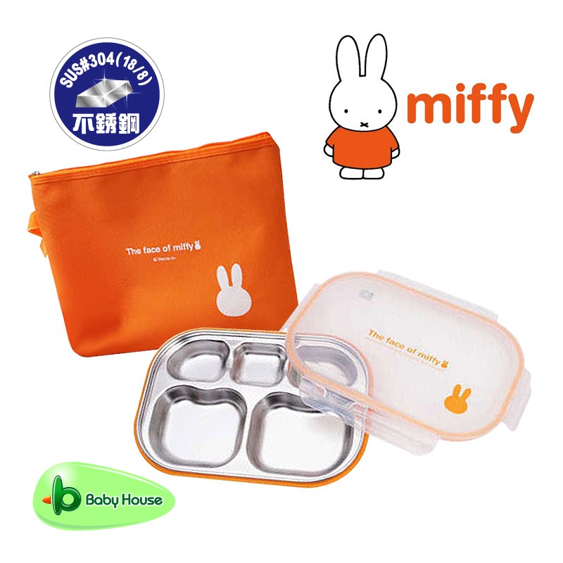 Miffy米菲 不銹鋼安全分隔餐盤盒-(橘色) 不銹鋼 304 餐盒 不銹鋼餐具 Baby House 愛兒房官方商城