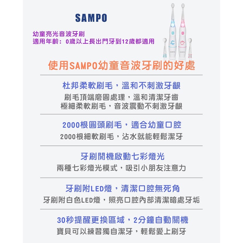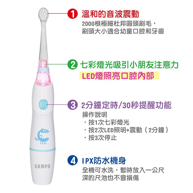 SAMPO 聲寶兒童亮光音波震動牙刷/電動牙刷TB-Z1806CL (藍) BabyHouse 愛兒房官方商城