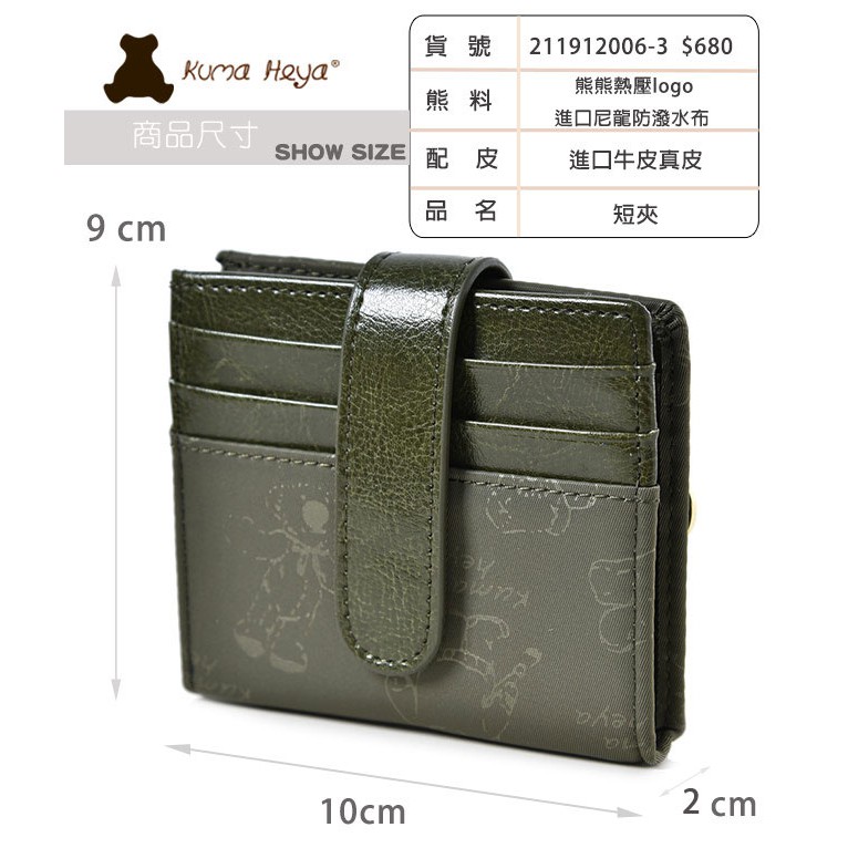 kuma heya -日本帆布LOGO卡片零錢夾 -森林綠-福利品