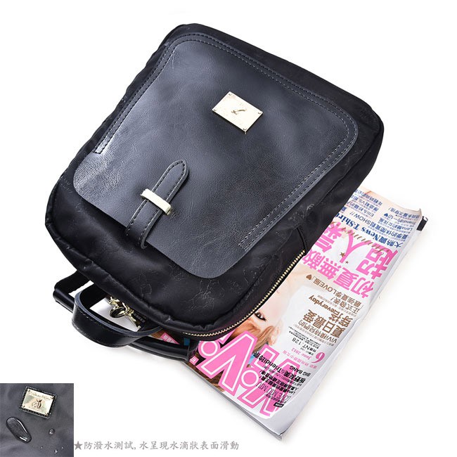 kuma heya -日本帆布LOGO極簡2way後背包 -金鑽黑-福利NG品