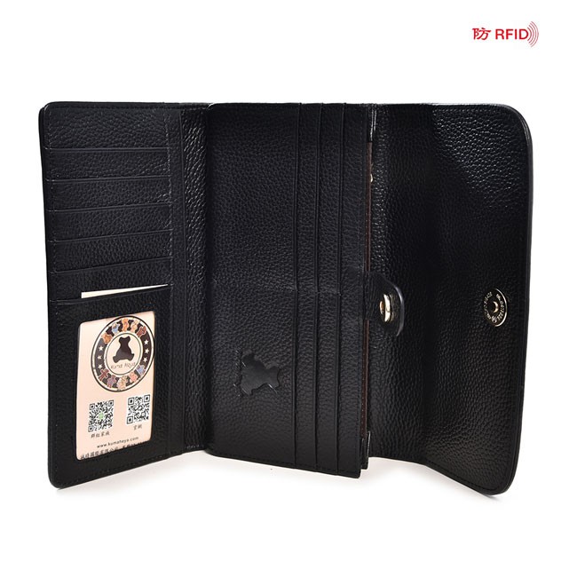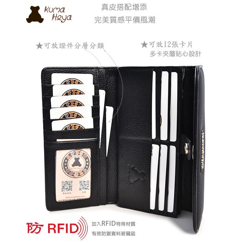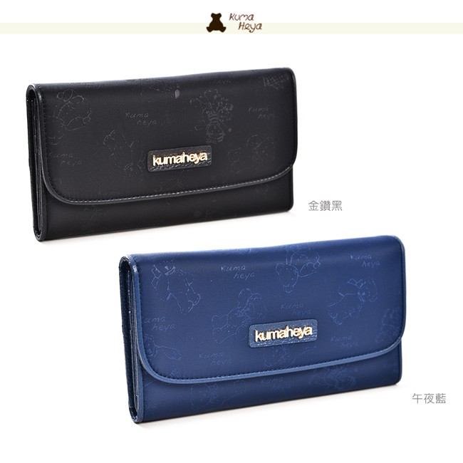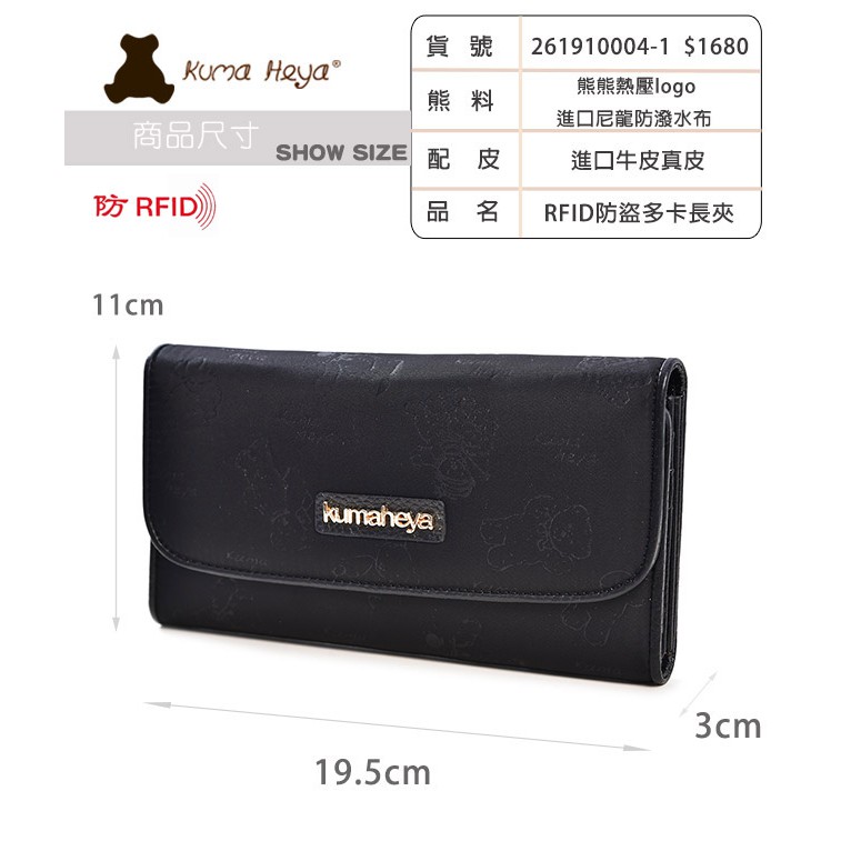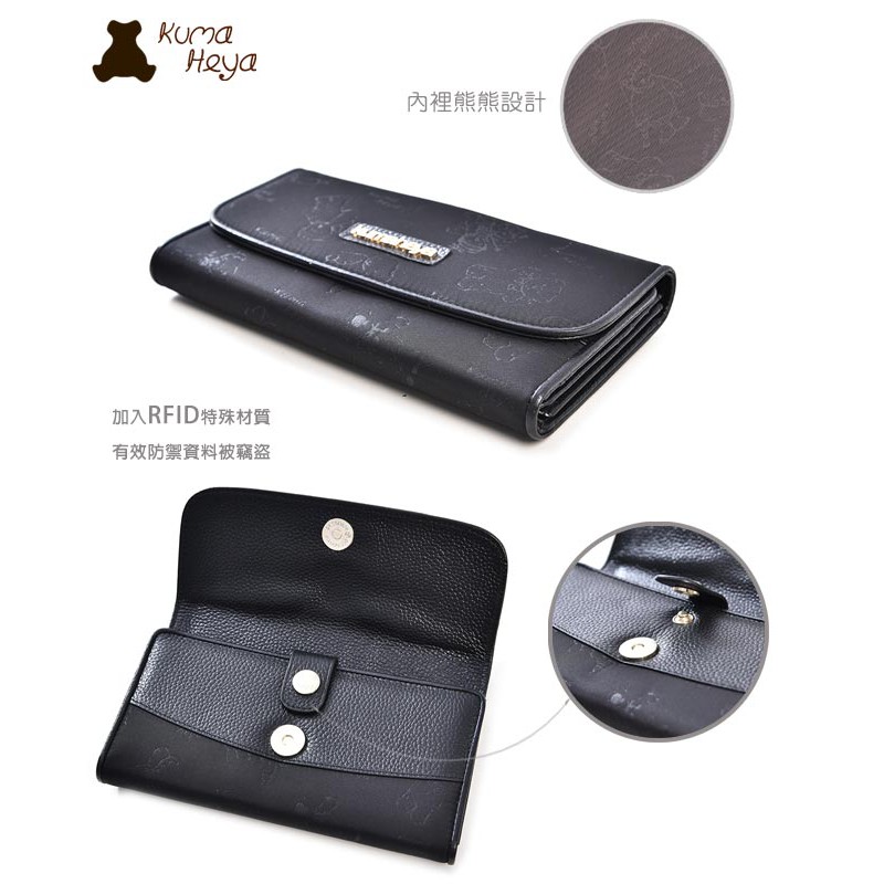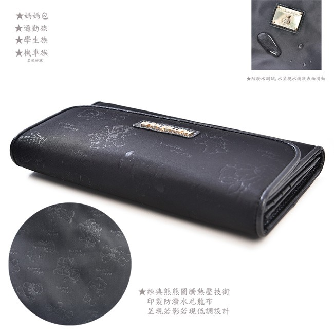 kuma heya -日本帆布LOGO三折機能長夾 -金鑽黑