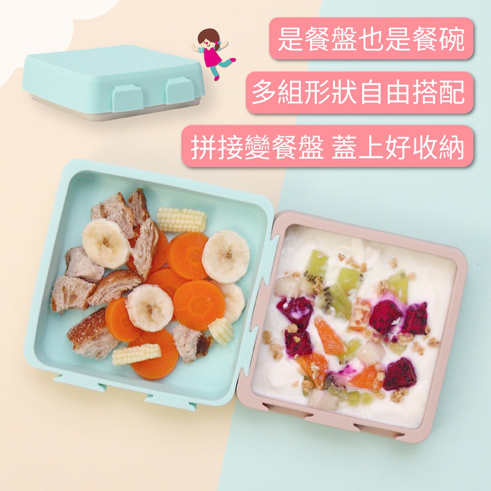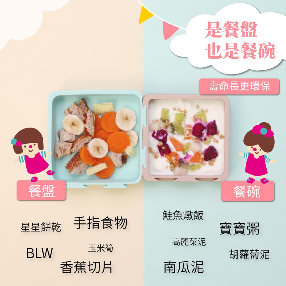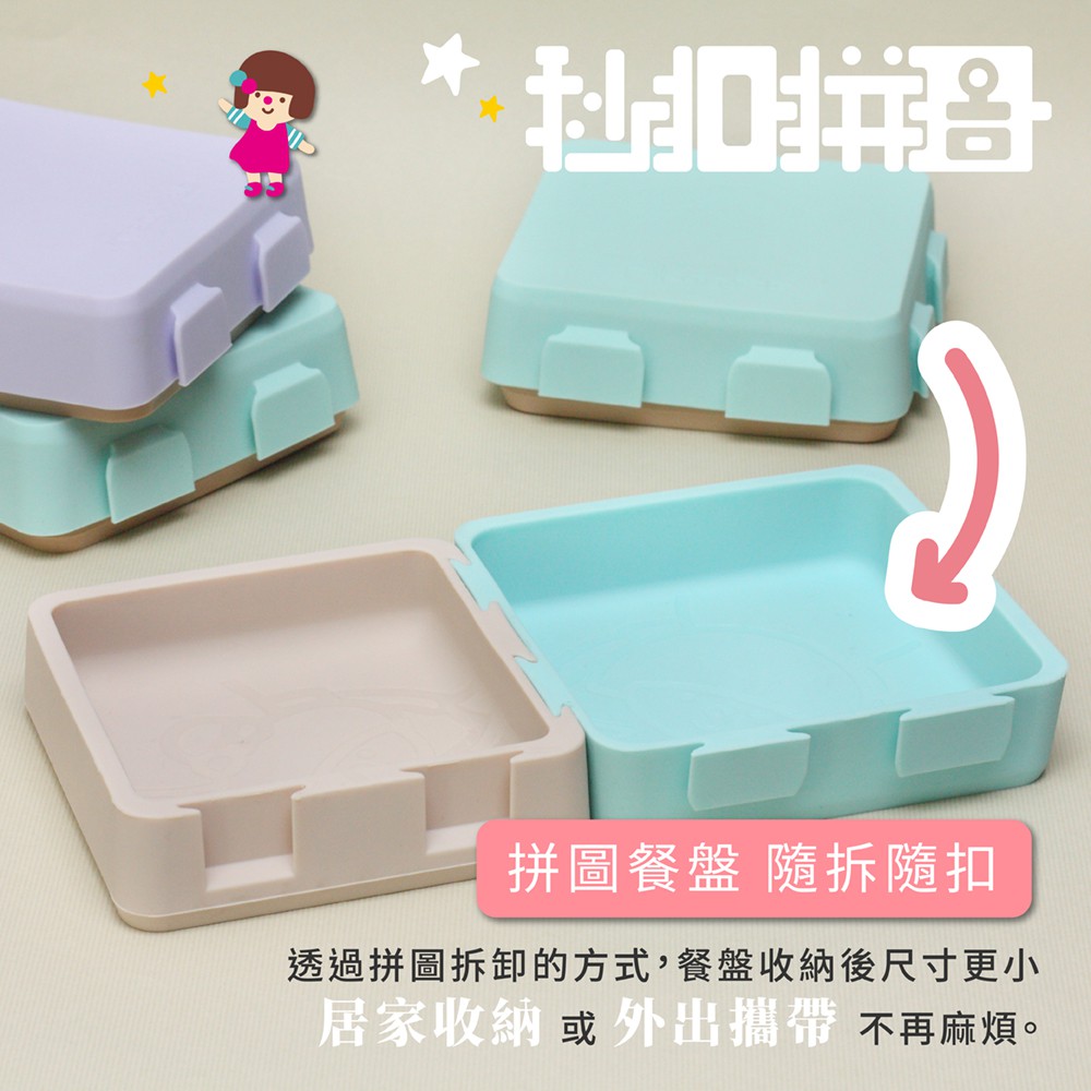 【2angels】矽膠秒扣拼圖隨行餐盤-薰衣草拿鐵|贈8ml奶瓶餐具清潔液隨身包1包|嬰幼兒專用|副食品餐具|耐高溫