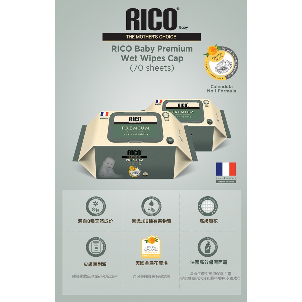 韓國【Rico Baby】⾦盞花有機天然特厚款濕紙⼱ / Premium 1包70⽚裝10包 / 嬰幼兒專用