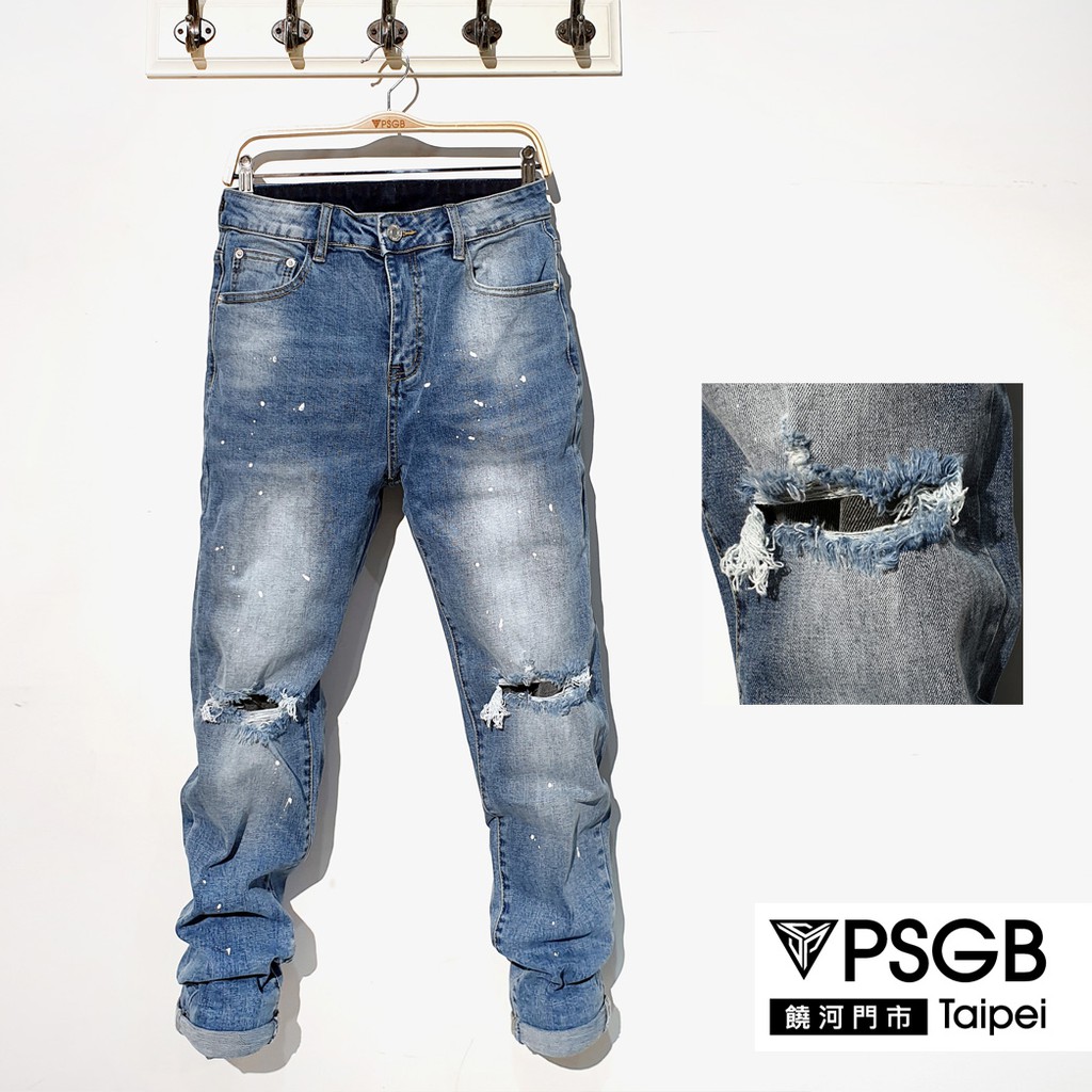 PSGB Taipei - J-0607 白漆雙破彈力牛仔褲-藍 - 丹寧 - 新品登場 - 現貨