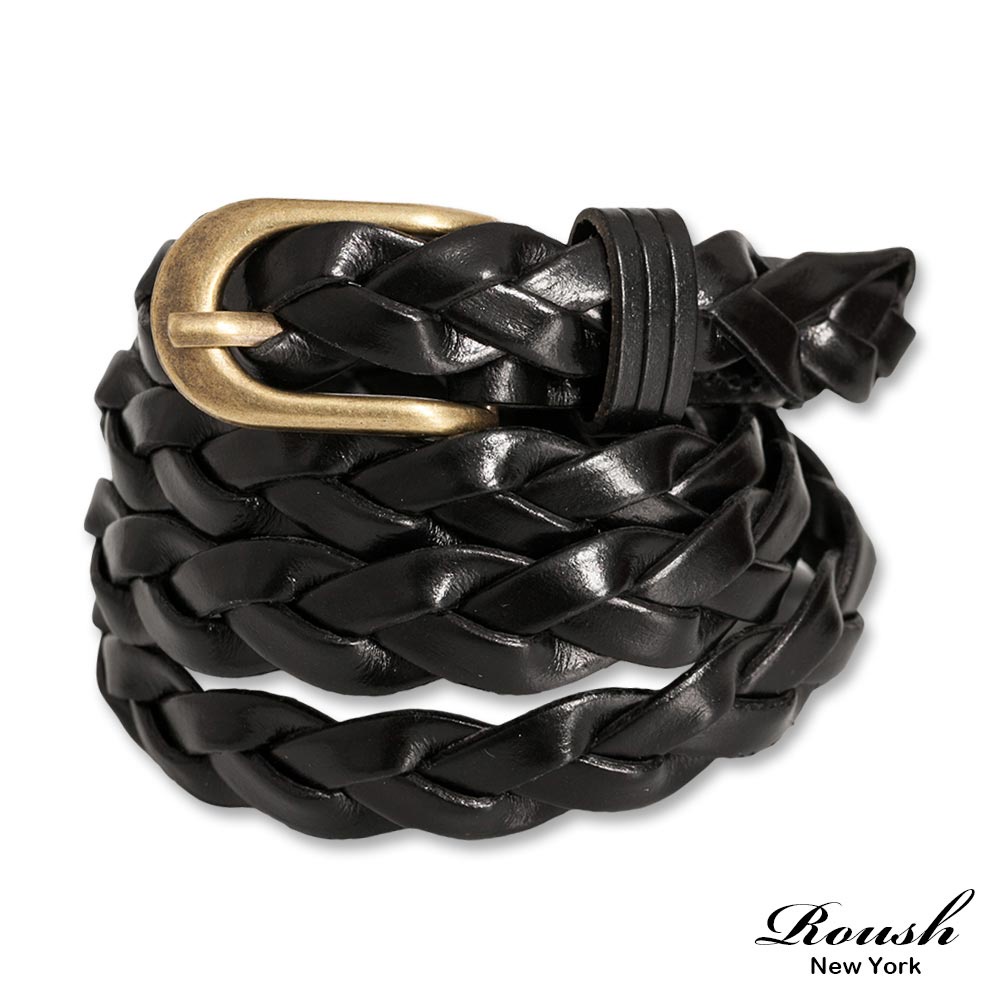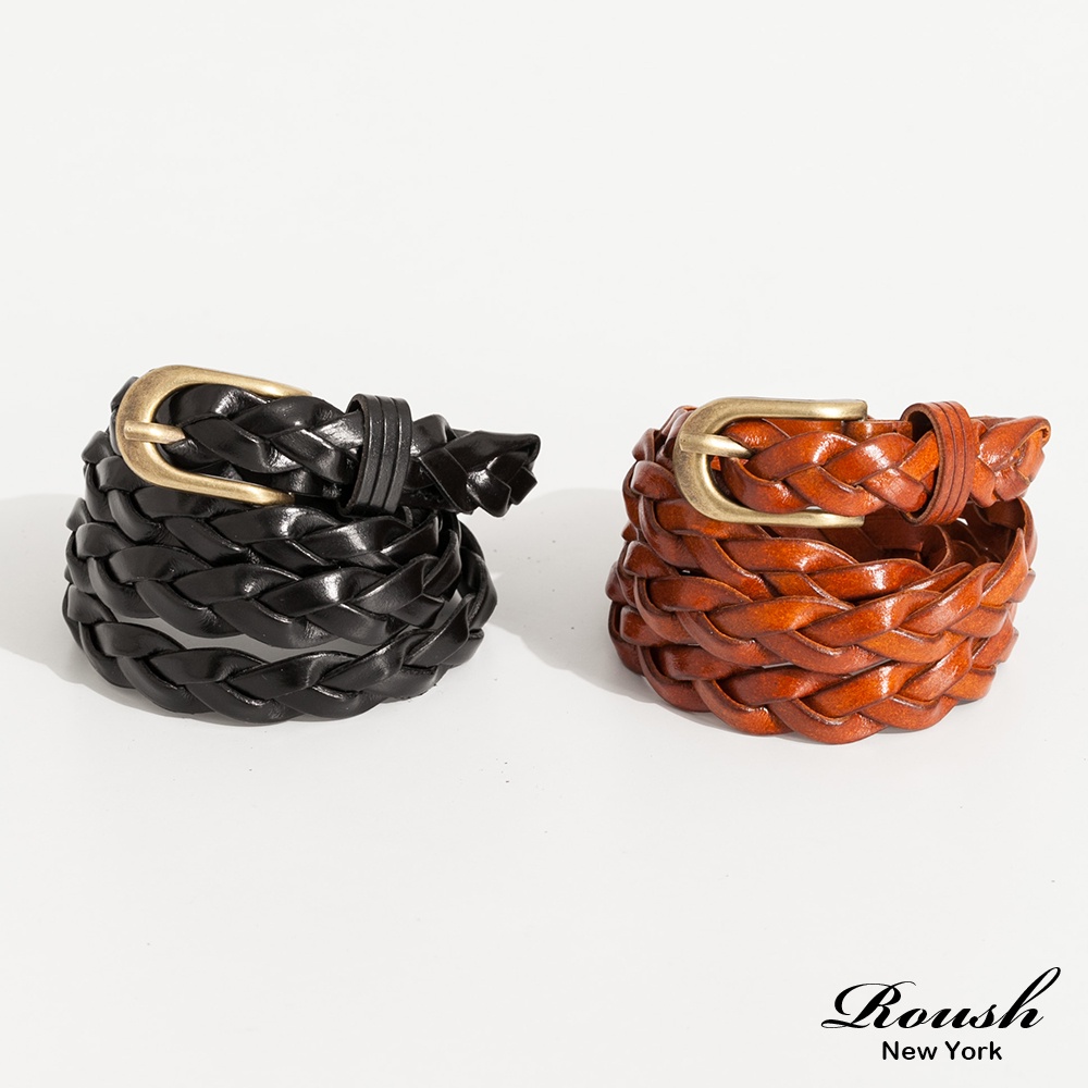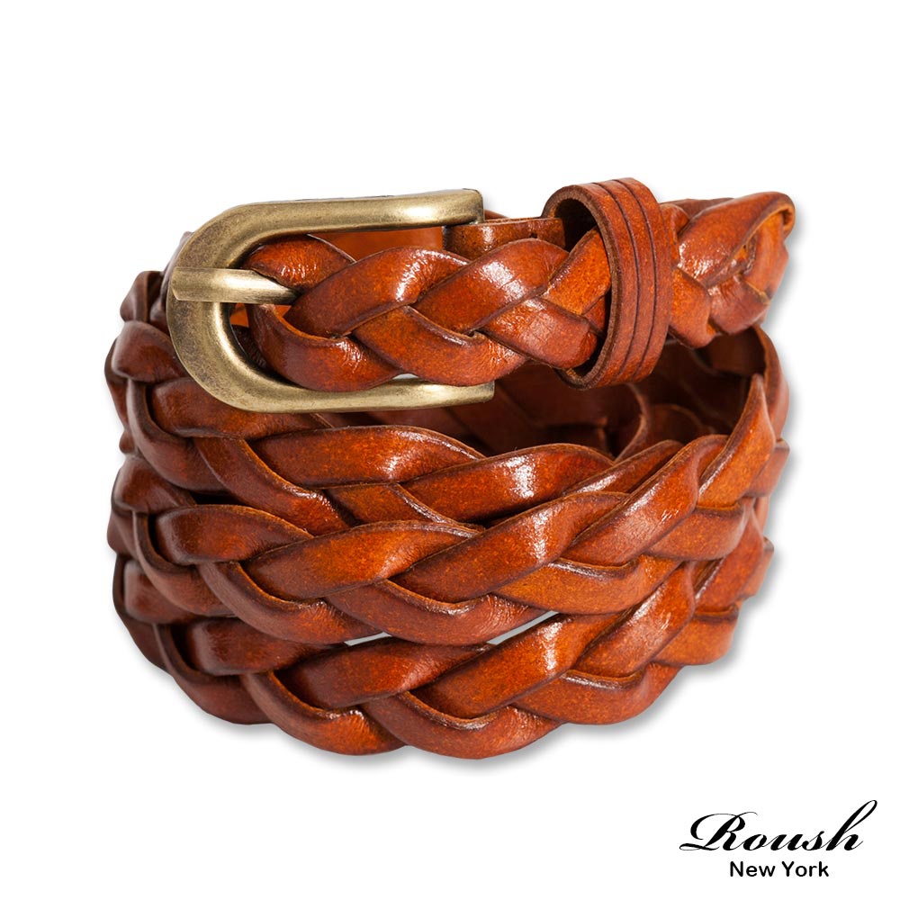 Roush - 女生古銅色釦頭仿小牛皮編織皮帶【2115】