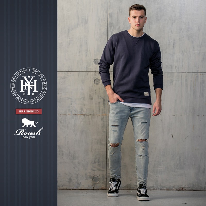 Roush - 雙膝刀割破壞水洗牛仔褲【8201106】