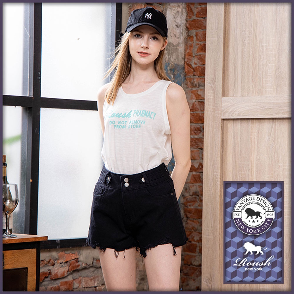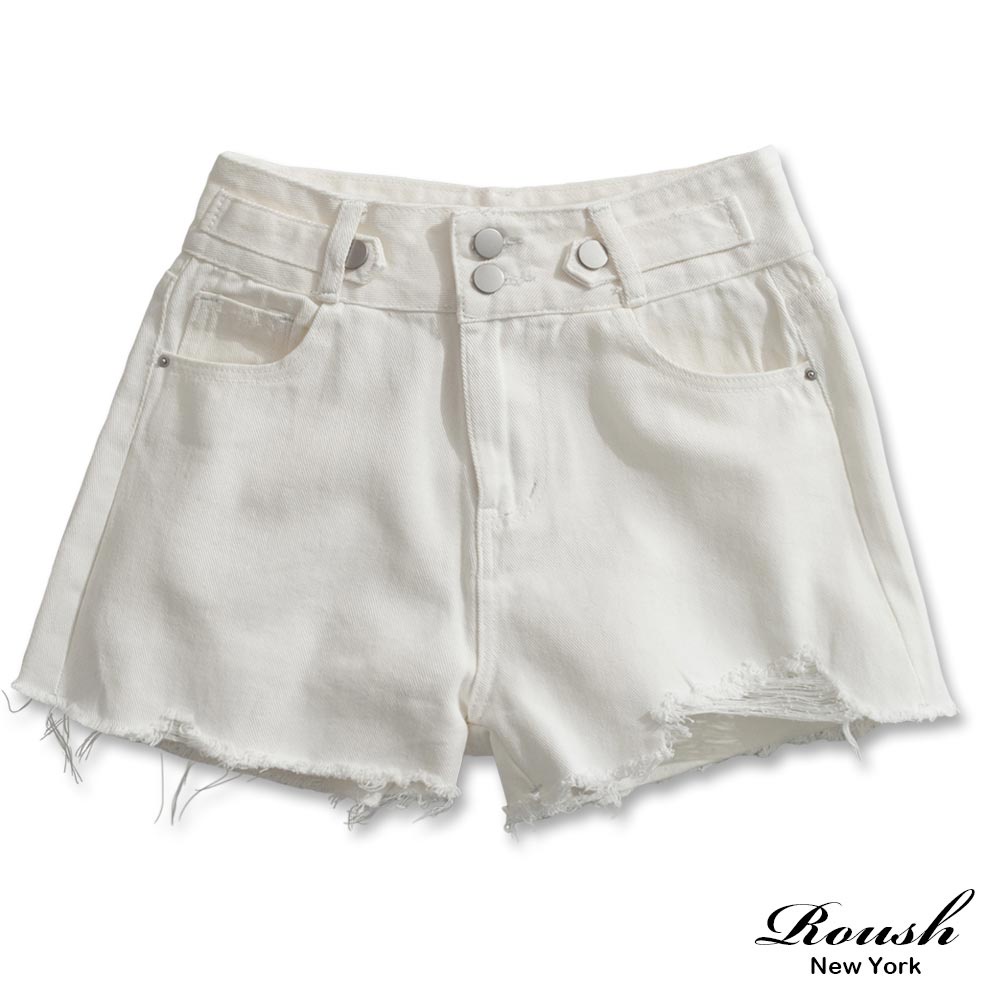 Roush - 女生雙釦造型性感抽鬚牛仔短褲【1058-1】