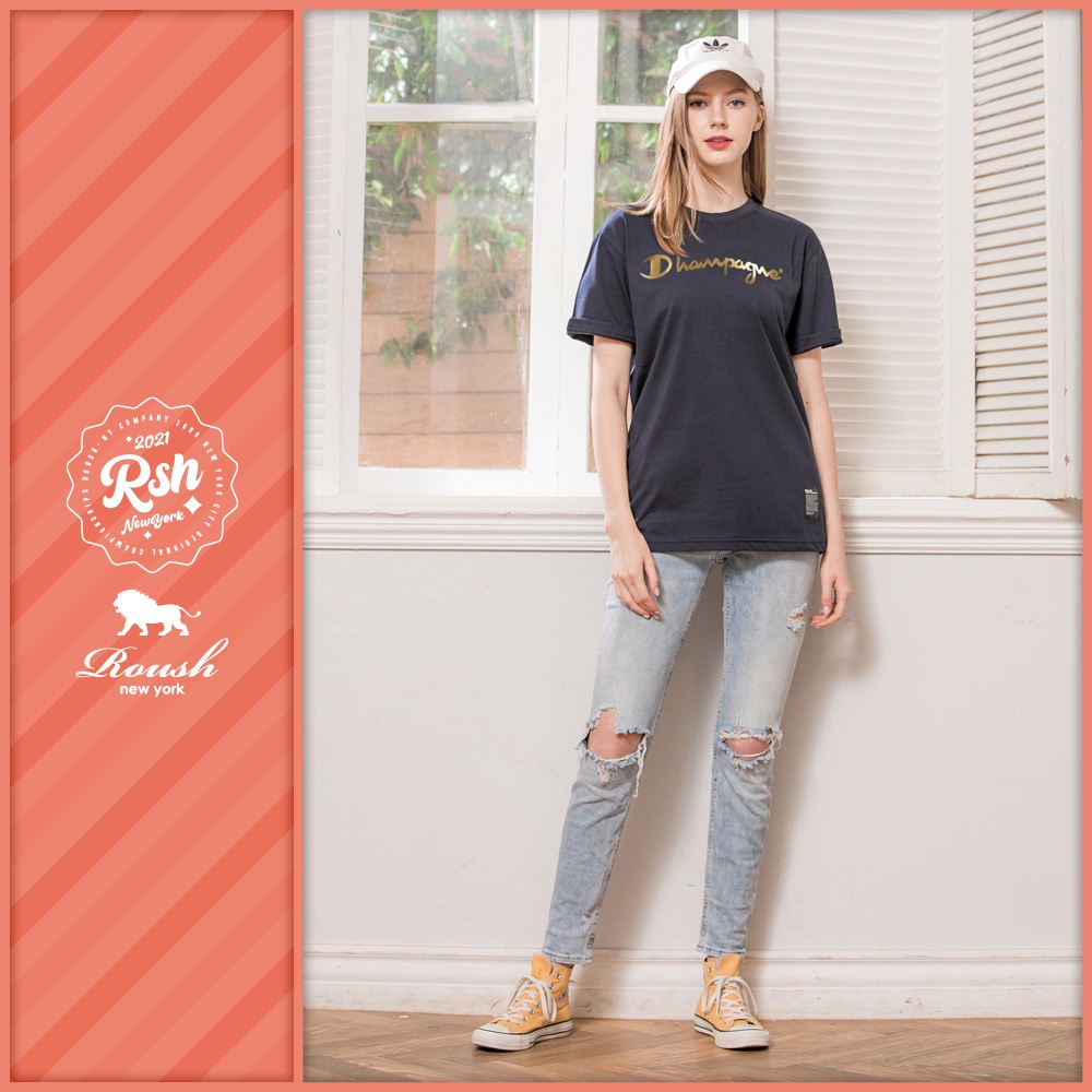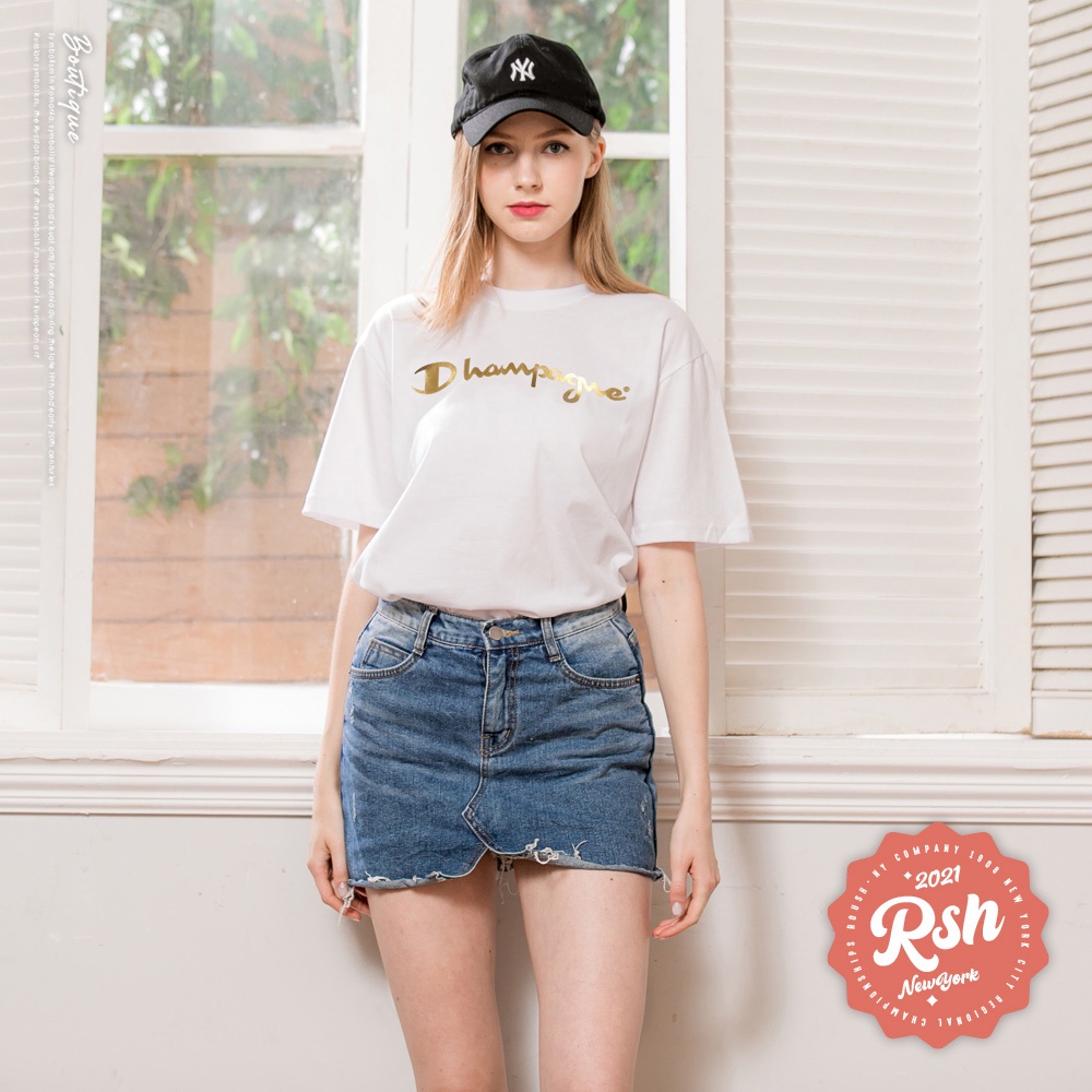 Roush - 女生over size翻玩燙金logo短T【2010109-1】