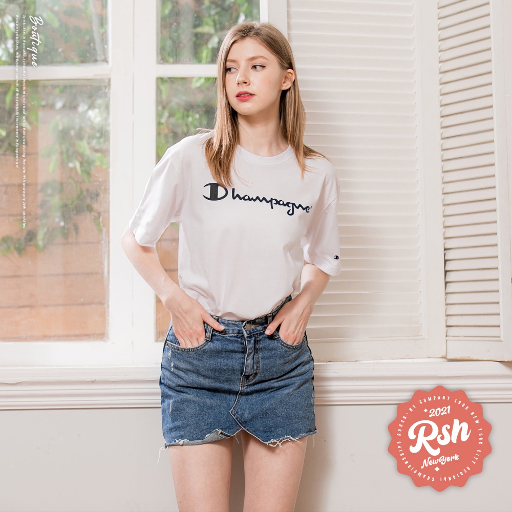 Roush - 女生over size翻玩logo美式塗鴉短T【910237-1】
