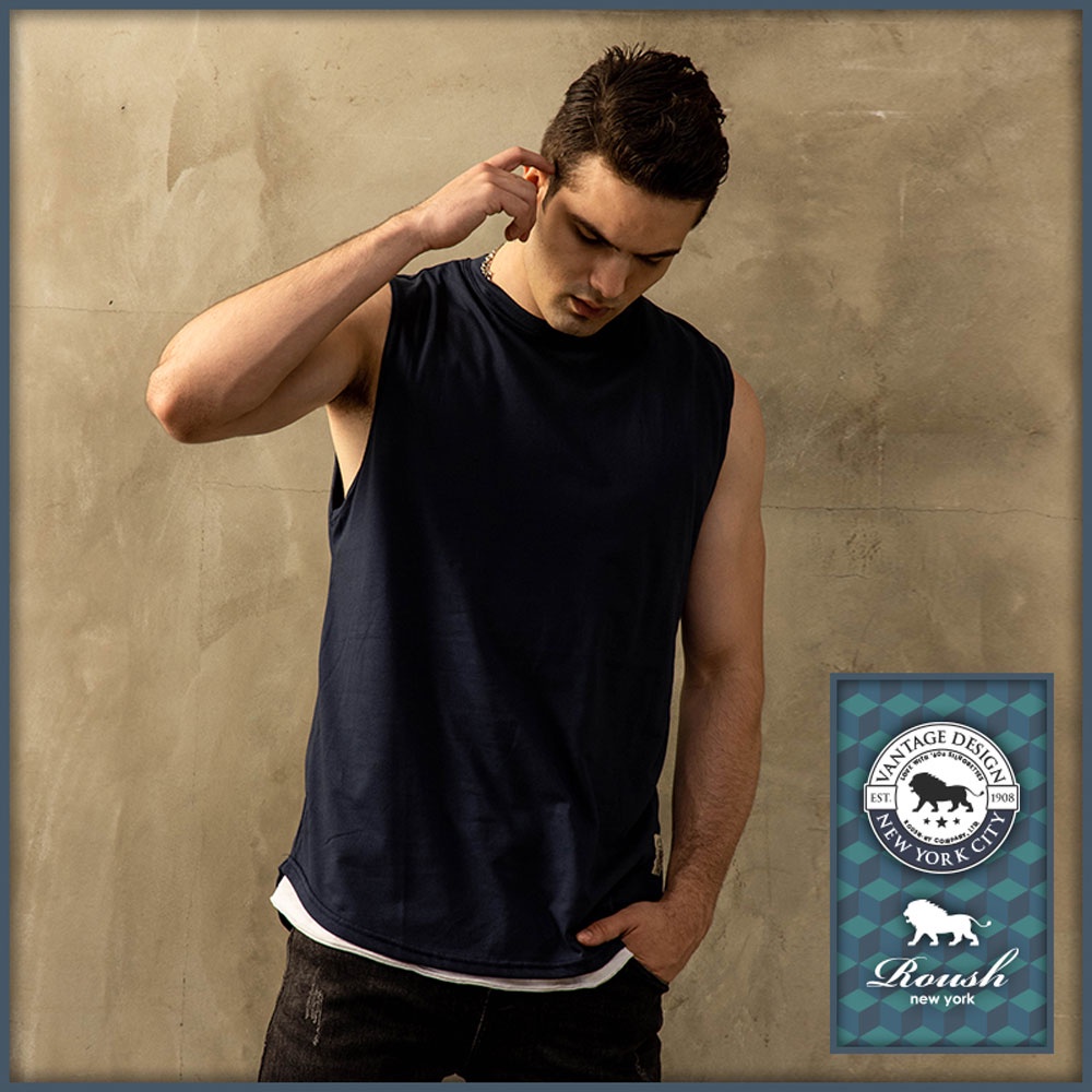Roush - 水洗棉無袖圓弧短TEE【2210209】