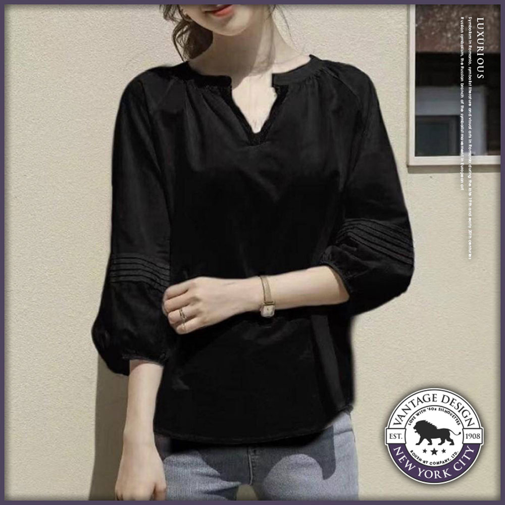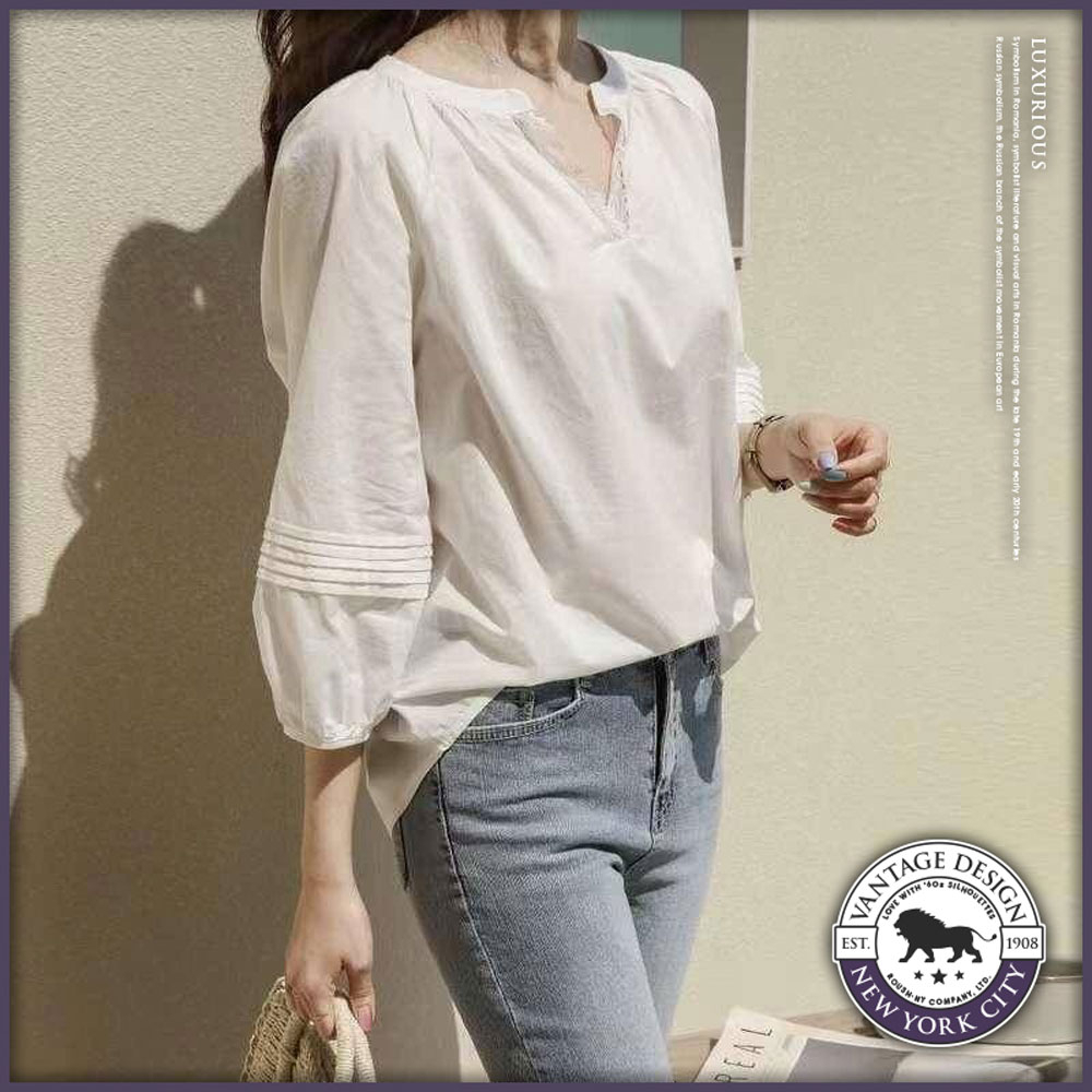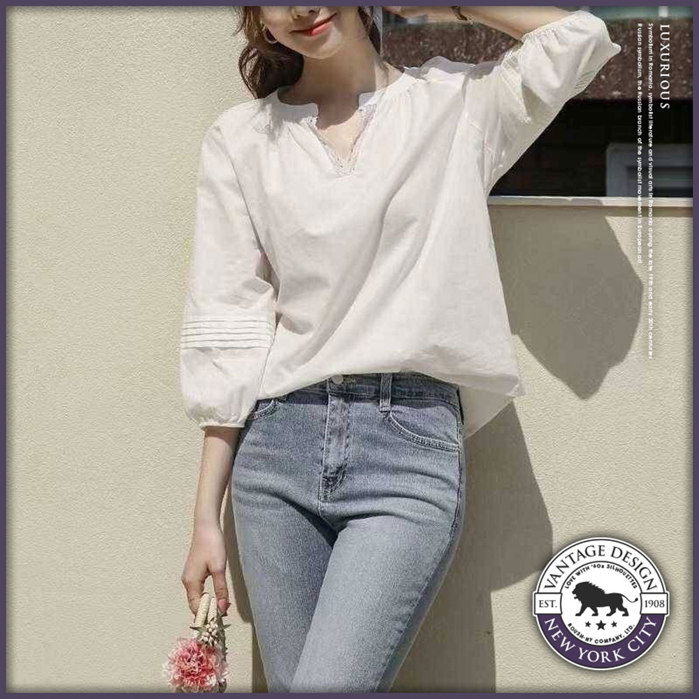 Roush - 女生法式簡約V領襯衫【3177】