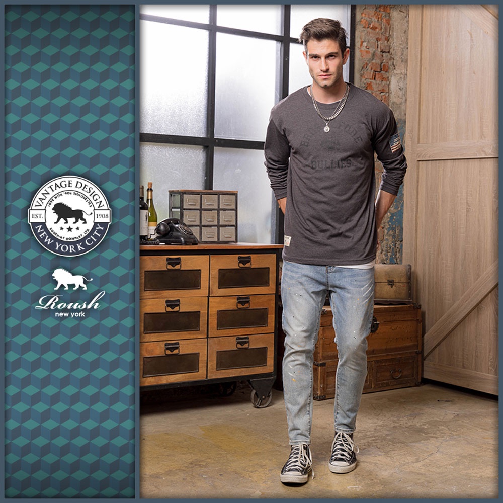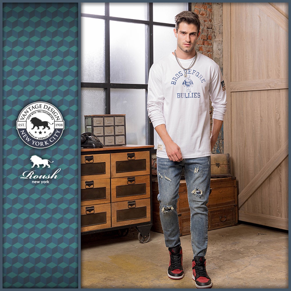 Roush - 美式破版鬥牛犬長TEE【2212619】