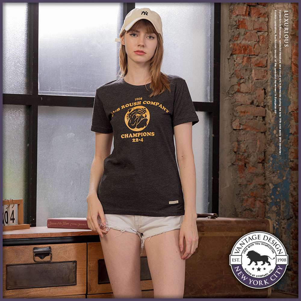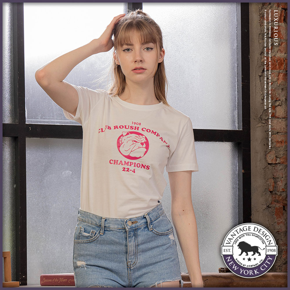Roush - 女生美式晶油鬥牛犬柔綿短TEE【2310028】