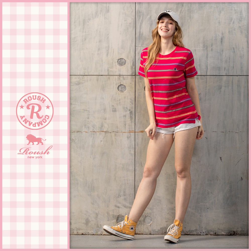 Roush - 女生翻玩logo小繡花網眼短TEE【915208】