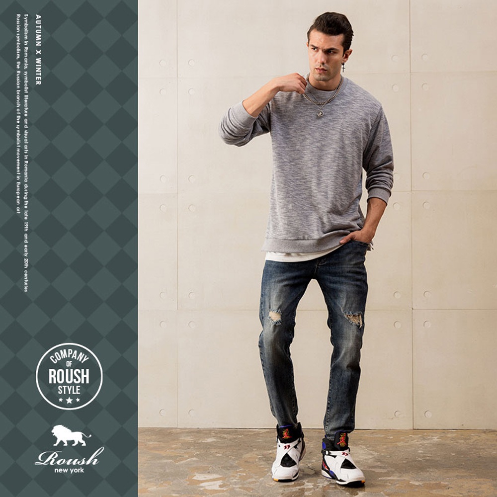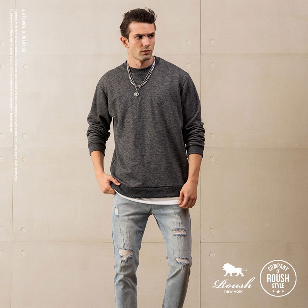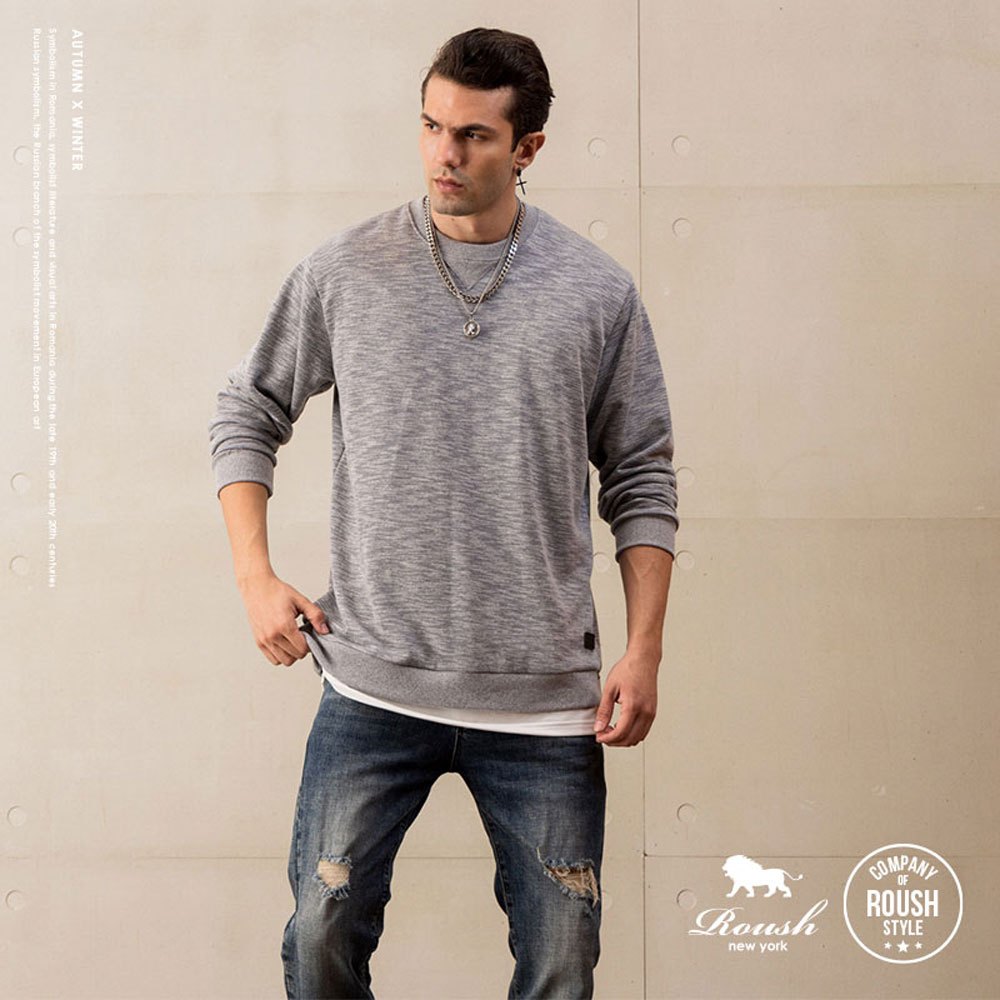 Roush - 側開岔假兩件賽洛棉毛圈布大學T EE【710521】