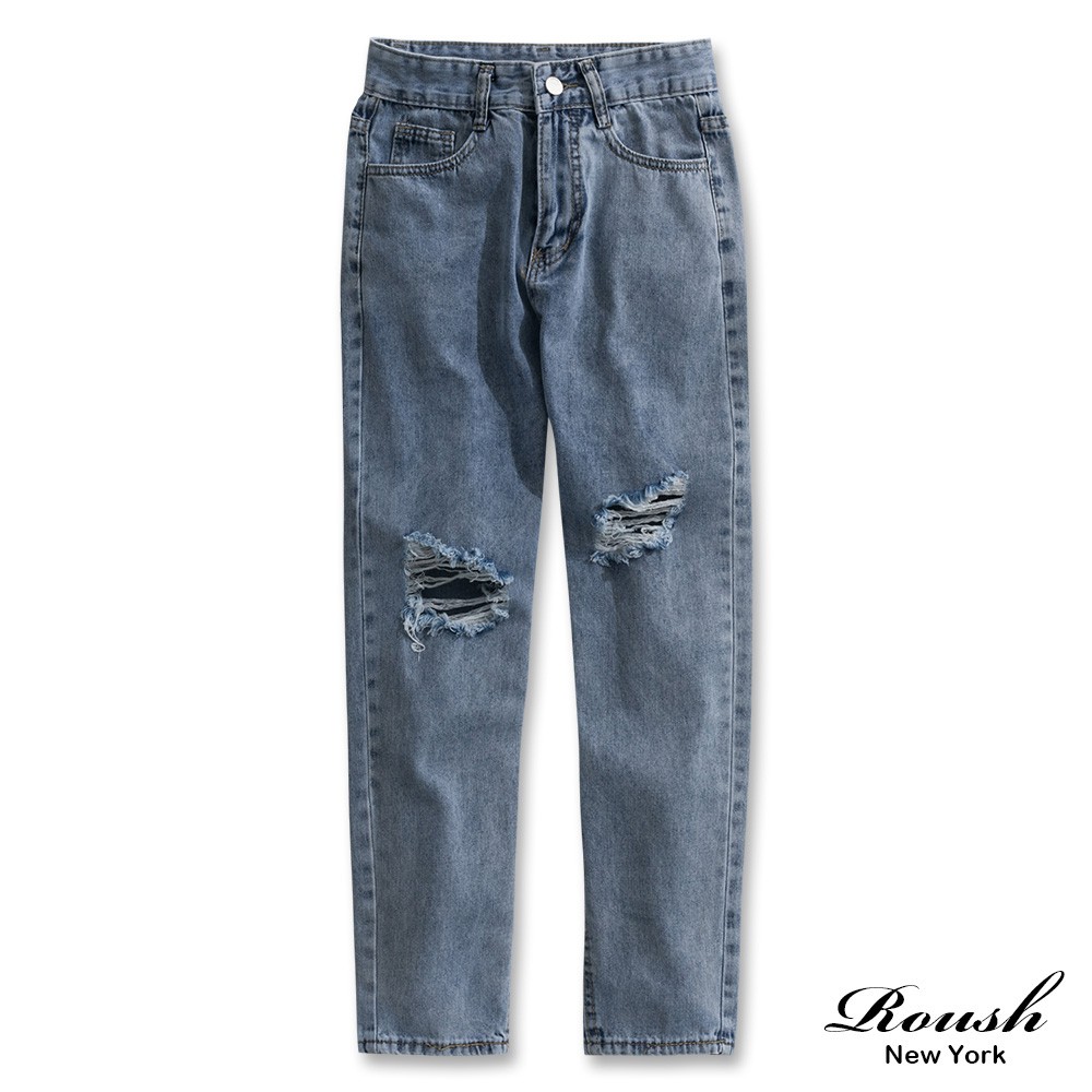 Roush - 女生甜美可愛刷破薄料牛仔褲【6535】