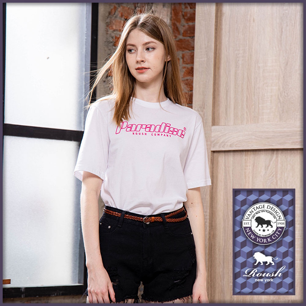 Roush - 女生Paradise螢光立體膠印寬鬆版短TEE【2112056】