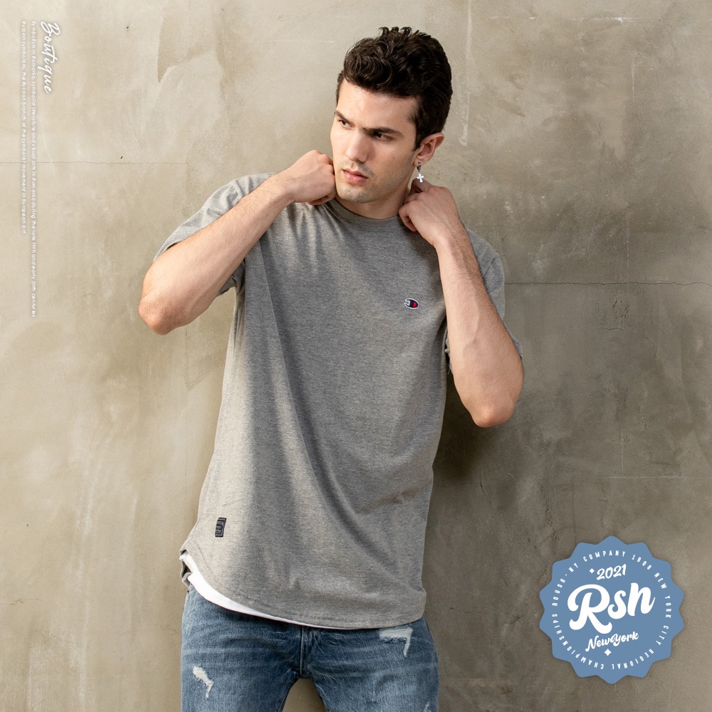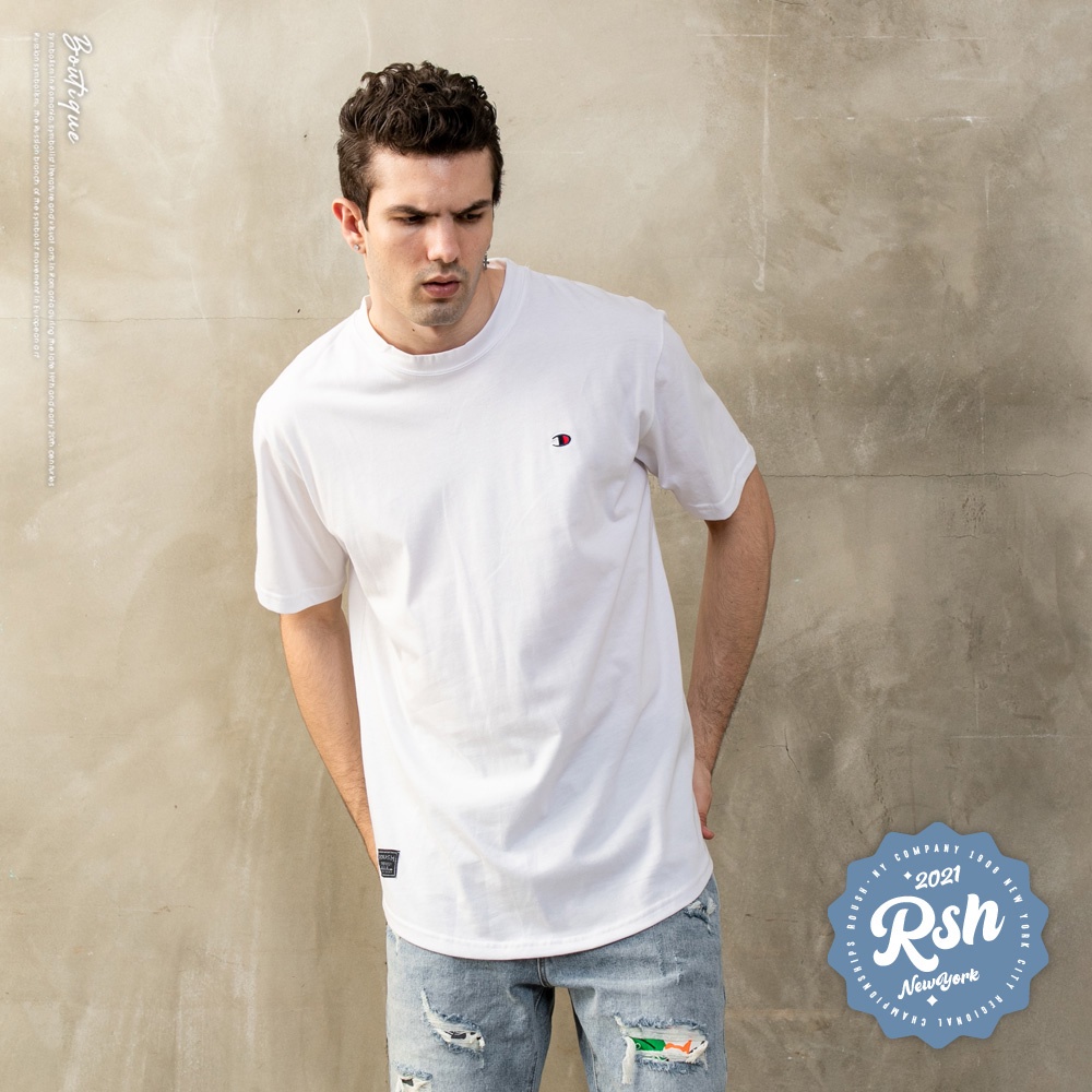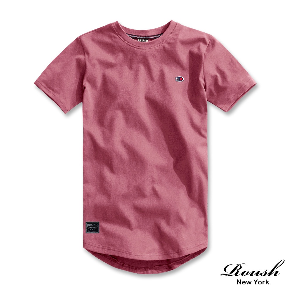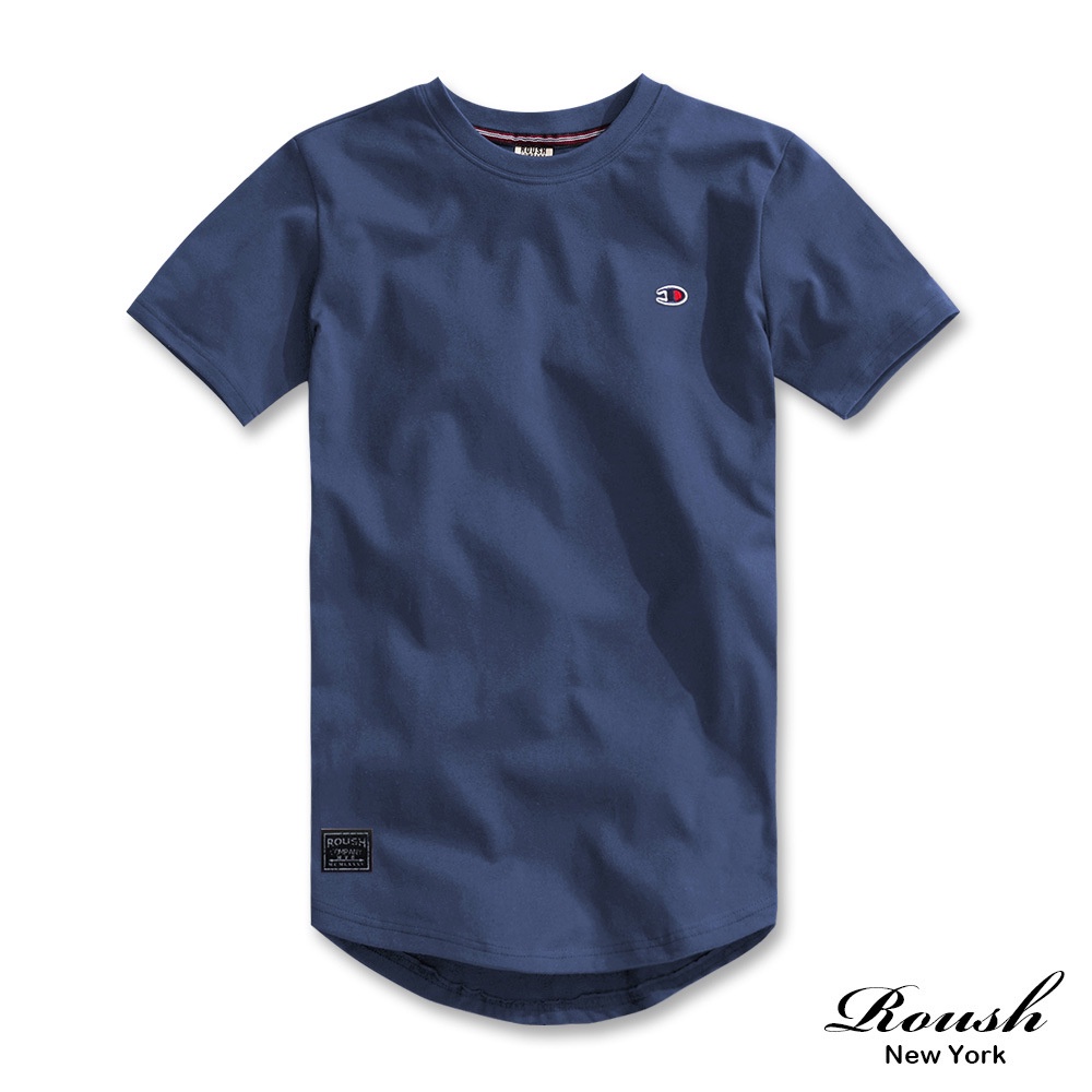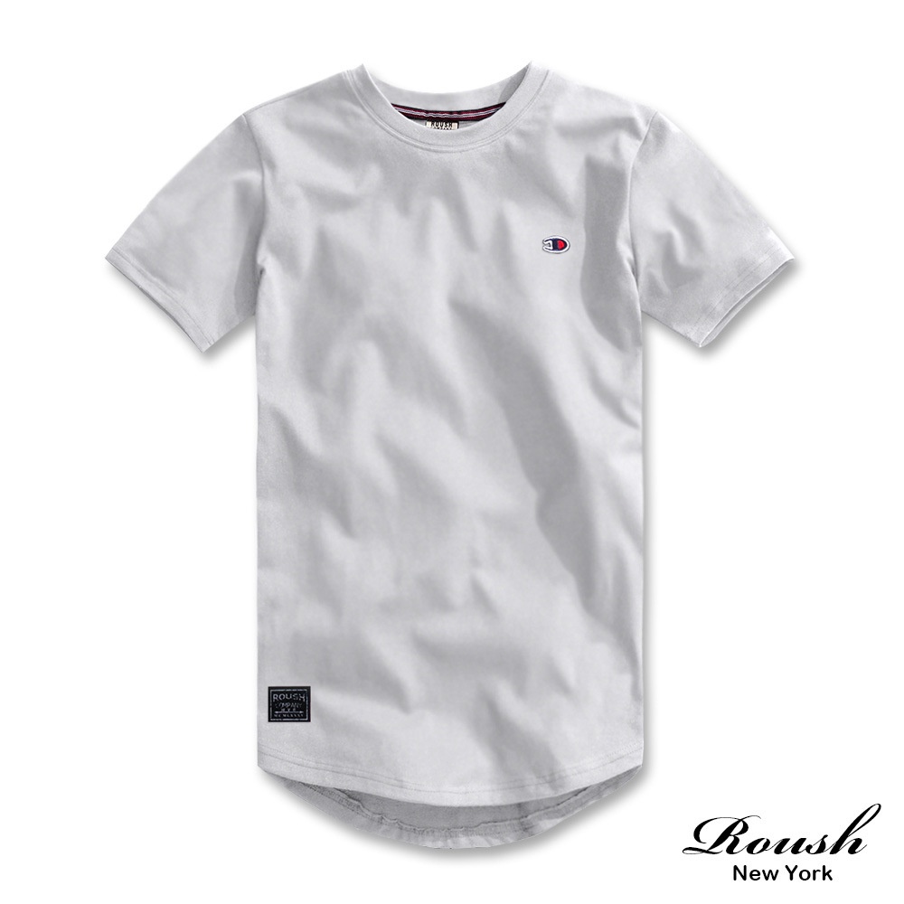 Roush - 翻玩logo小繡花圓弧剪裁素短TEE【2110025】