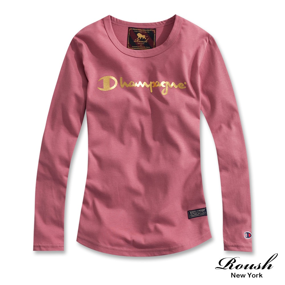 Roush - 女生翻玩燙金logo圓弧長TEE【2010558】