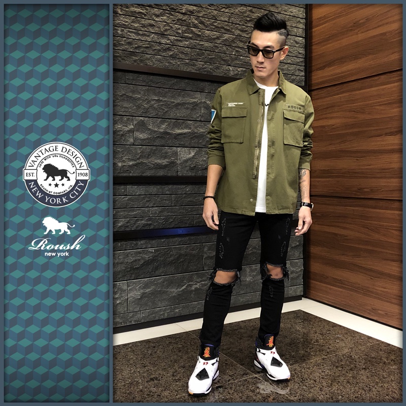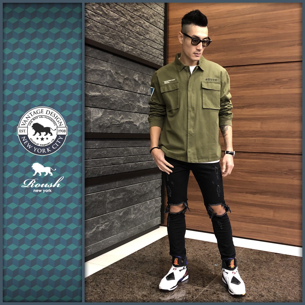 Roush - 重磅洗水軍裝式貼布外套【915616】