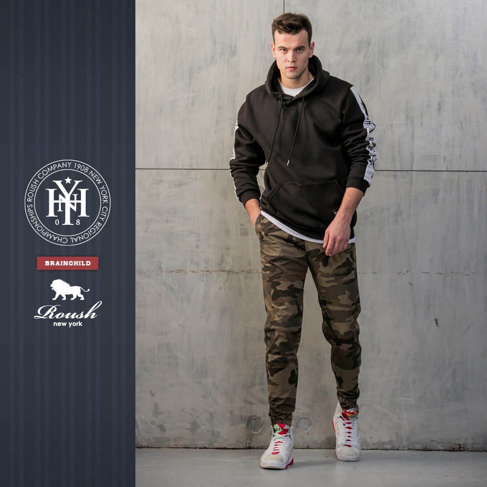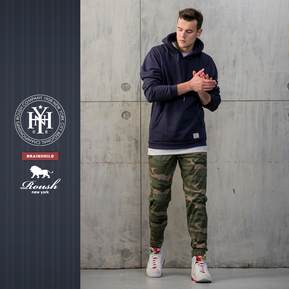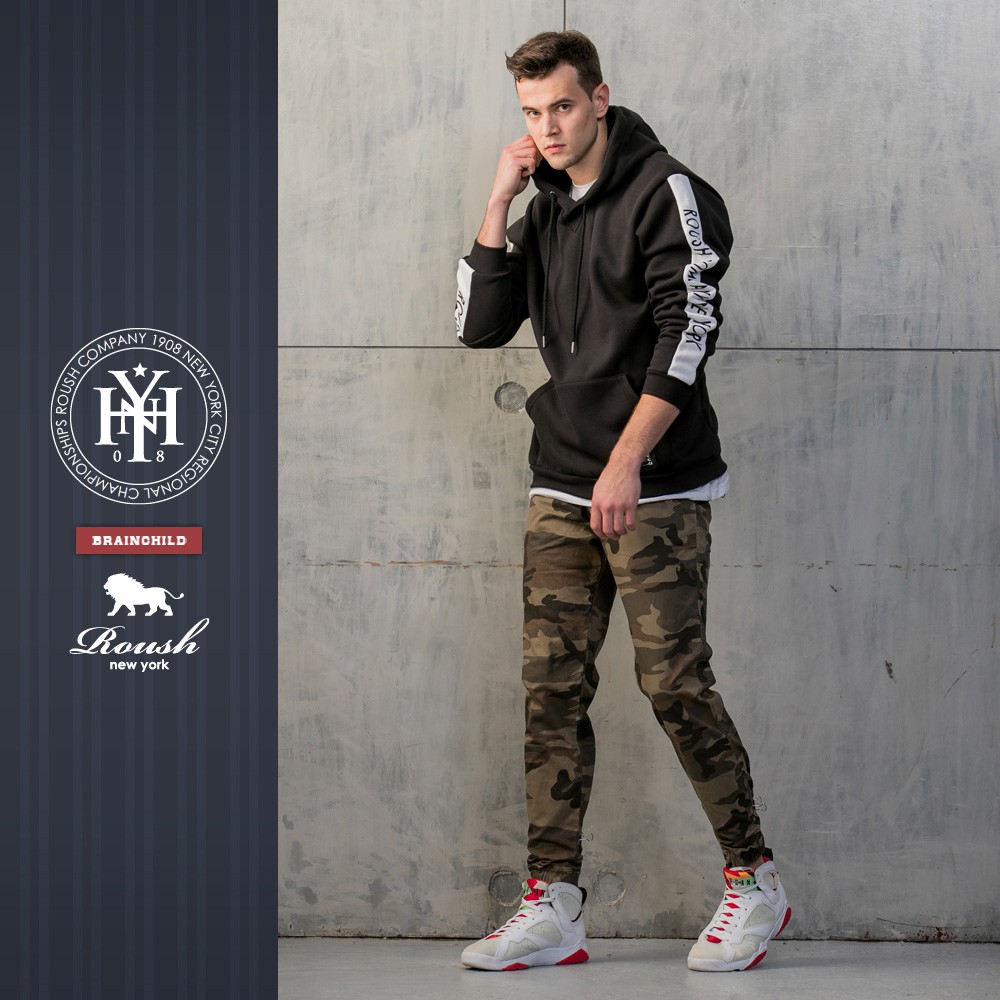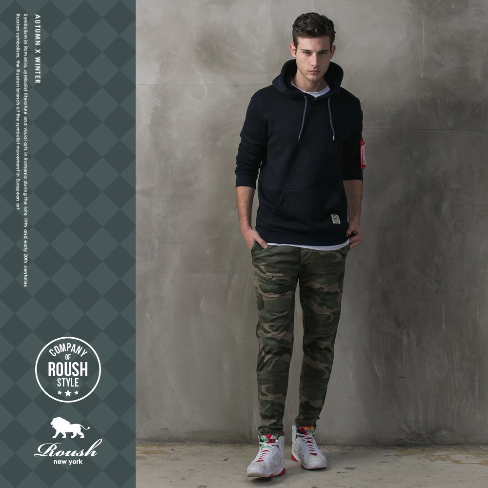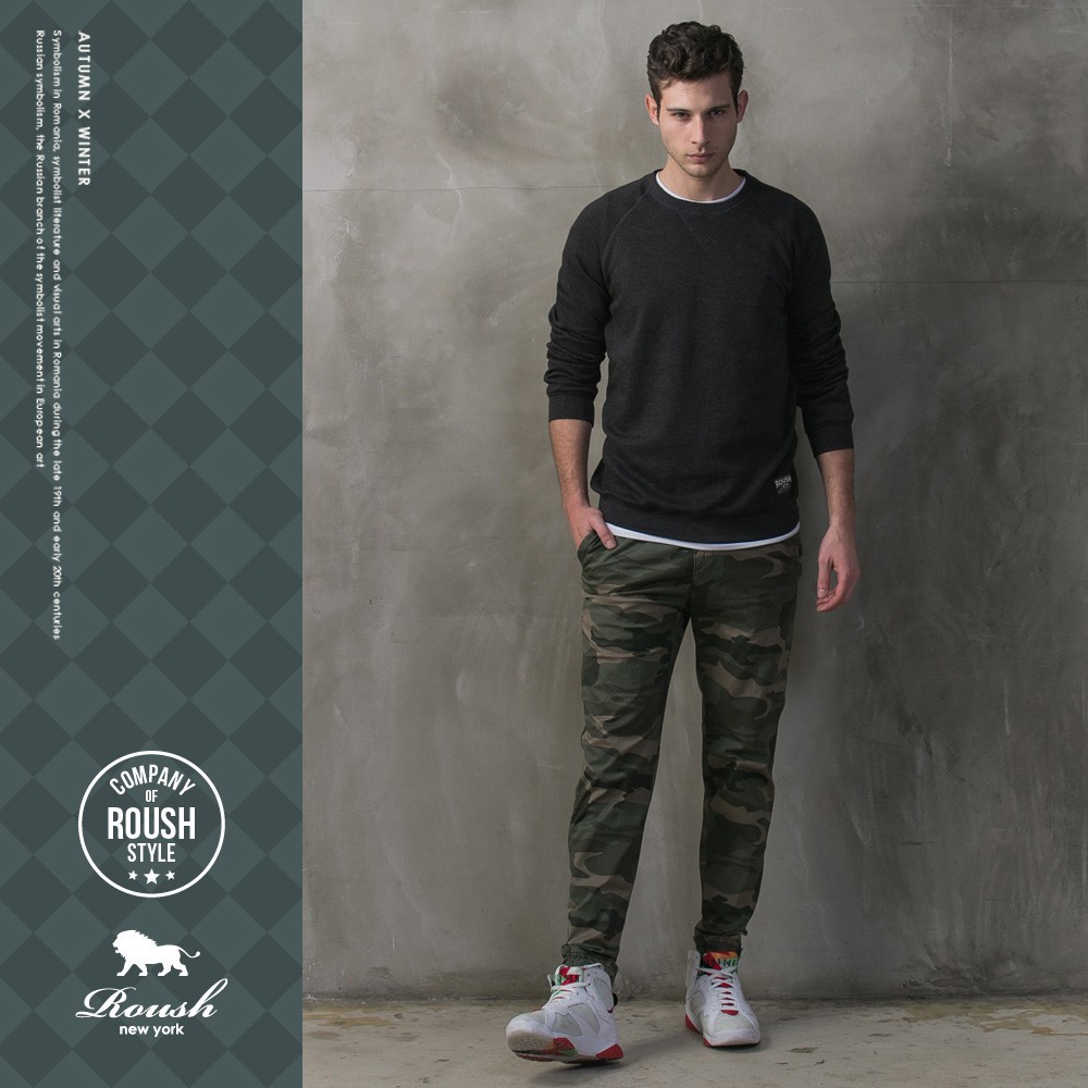 Roush - 高磅數迷彩水洗束口長褲 【8167】