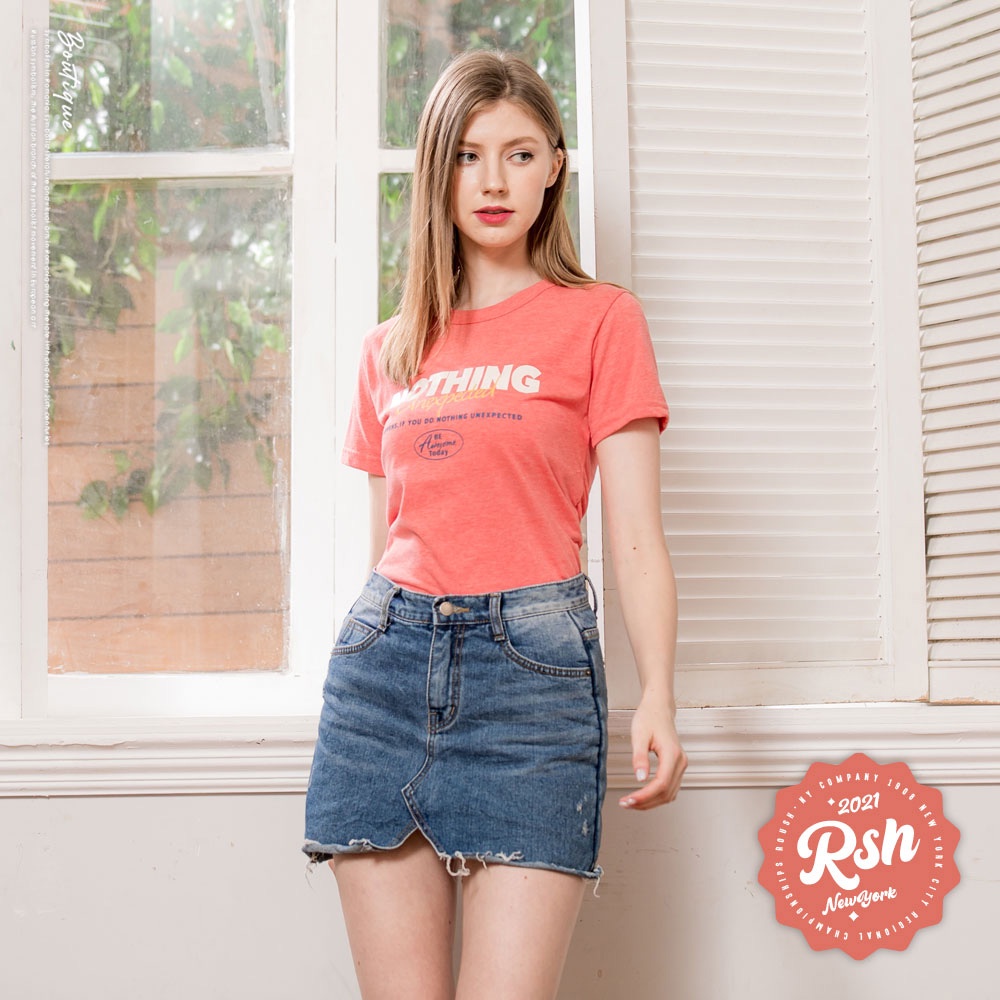 Roush - 女生NOTHING晶油膠印圓弧短TEE【2110066】