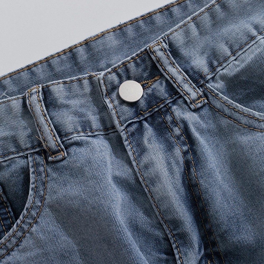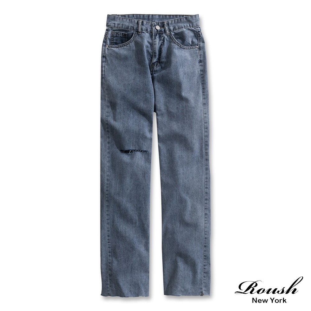 Roush - 女生寬版甜美貼布薄料牛仔褲【6521】