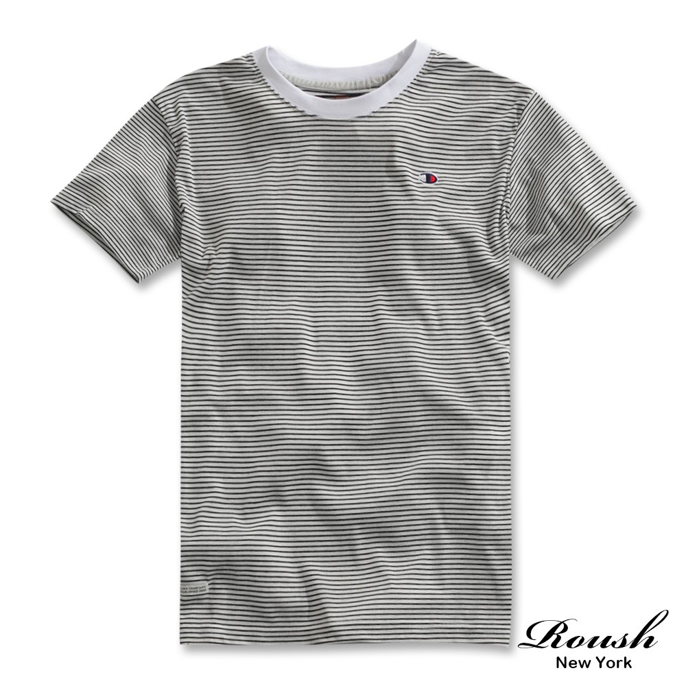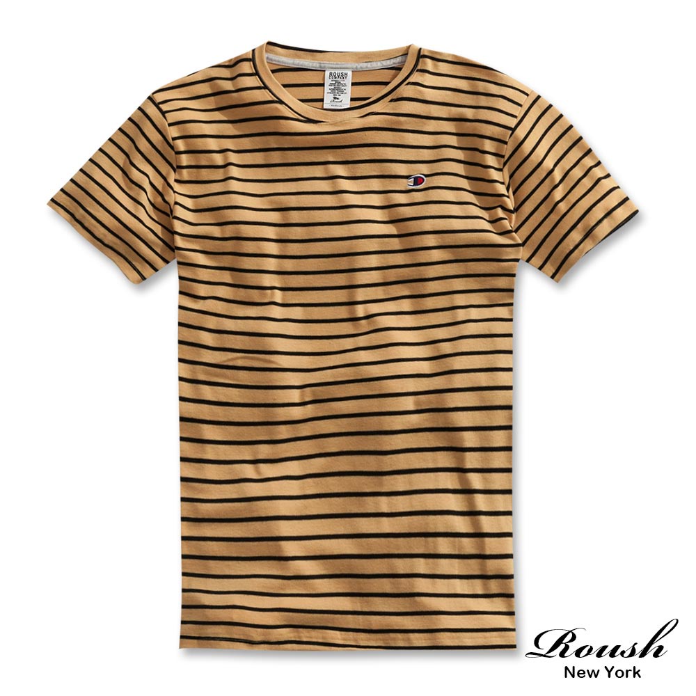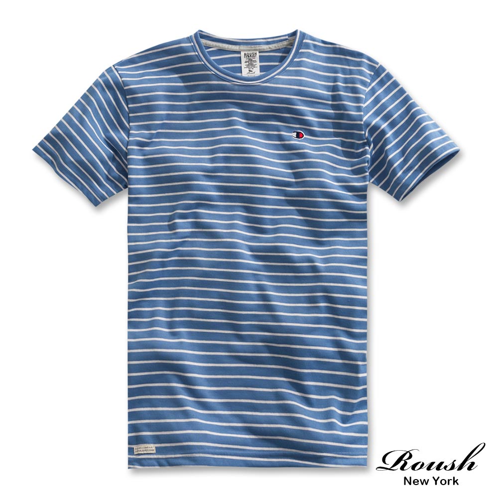 Roush - 翻玩logo小繡花美式水洗橫紋短TEE【2110099】