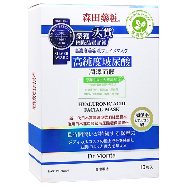 森田藥粧 高純度玻尿酸潤澤面膜10入《日藥本舖》