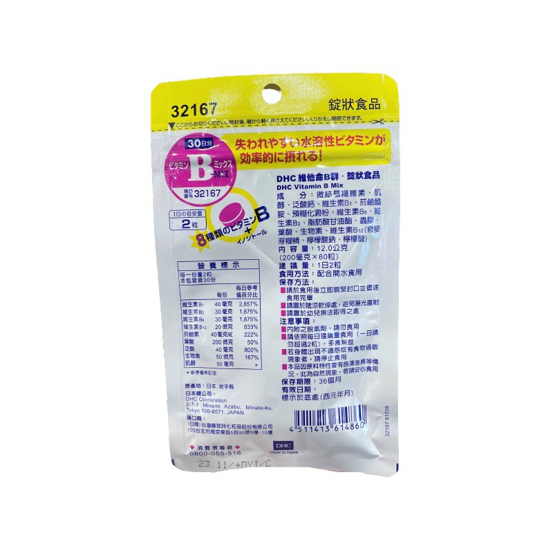 【日藥本舖】DHC維他命B群60粒_30日份
