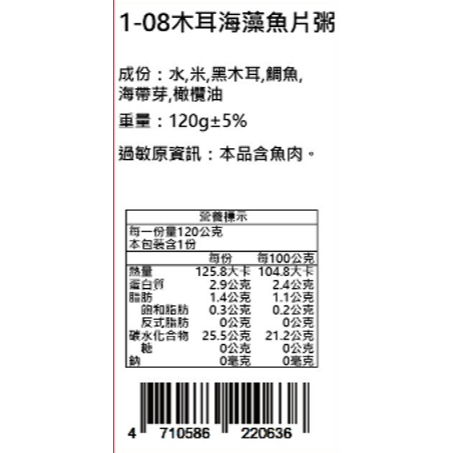 【捷捷寶寶粥】1-08 木耳海藻魚片小寶寶粥 | 冷凍副食品 營養師寶寶粥 小寶寶粥