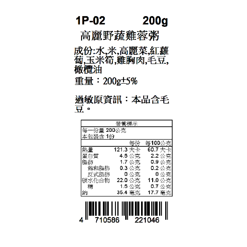 【捷捷寶寶粥】1P-02高麗野蔬大寶寶粥 | 冷凍副食品 營養師寶寶粥 中寶寶粥